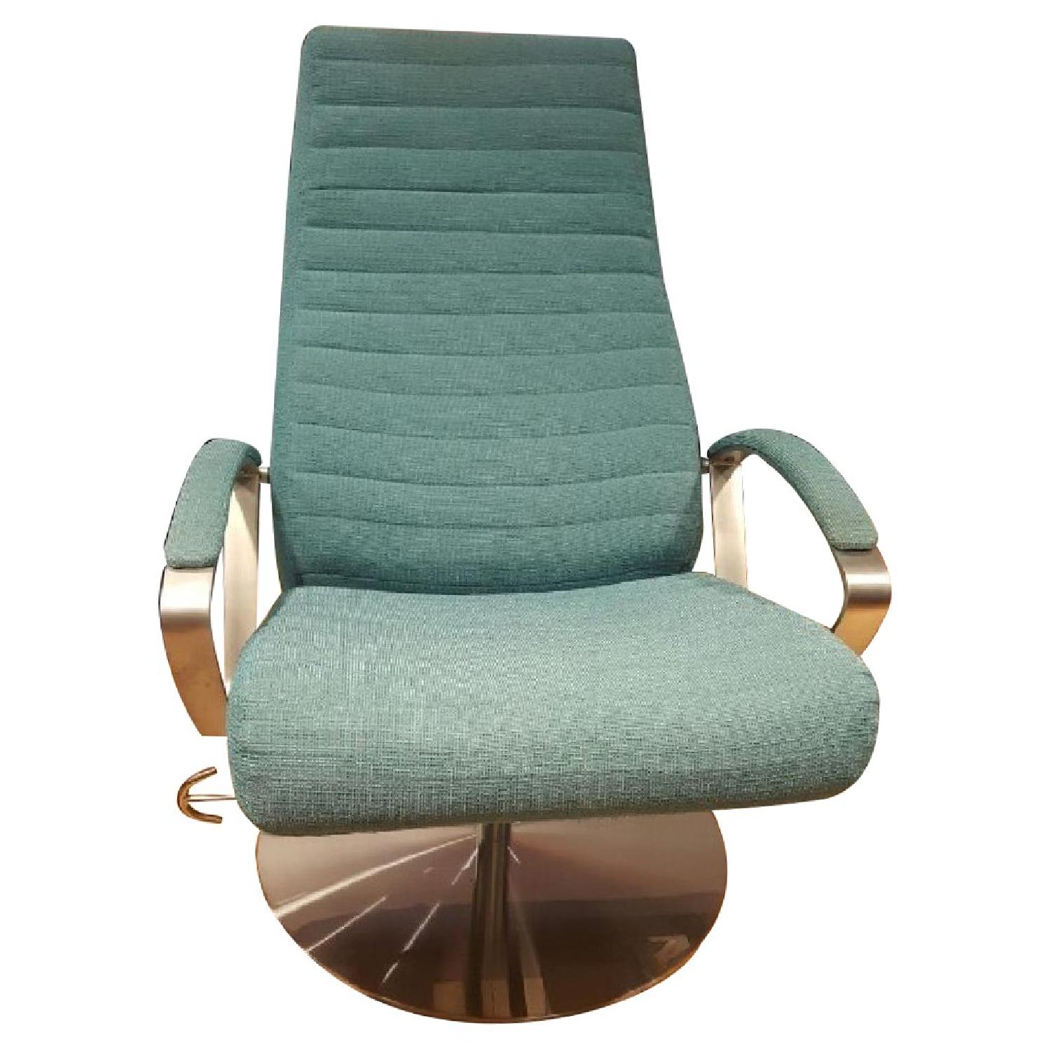 Seller's Notes:Turquoise Roma fabric 2235/brushed steel. H41¾xW25¾xD27¾"