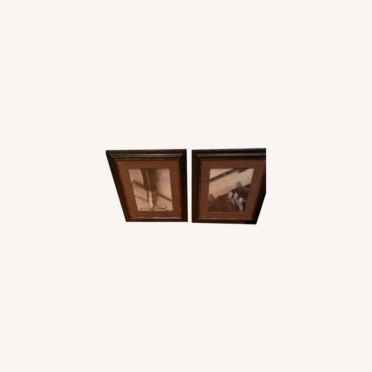 Seller's Notes:Bought these picture frames through a decorator for my last home office. Just changed my paint color for the room and now these nice elegant wall pictures no longer match. Nice brown framing with minor gold tinting - perfect condition.