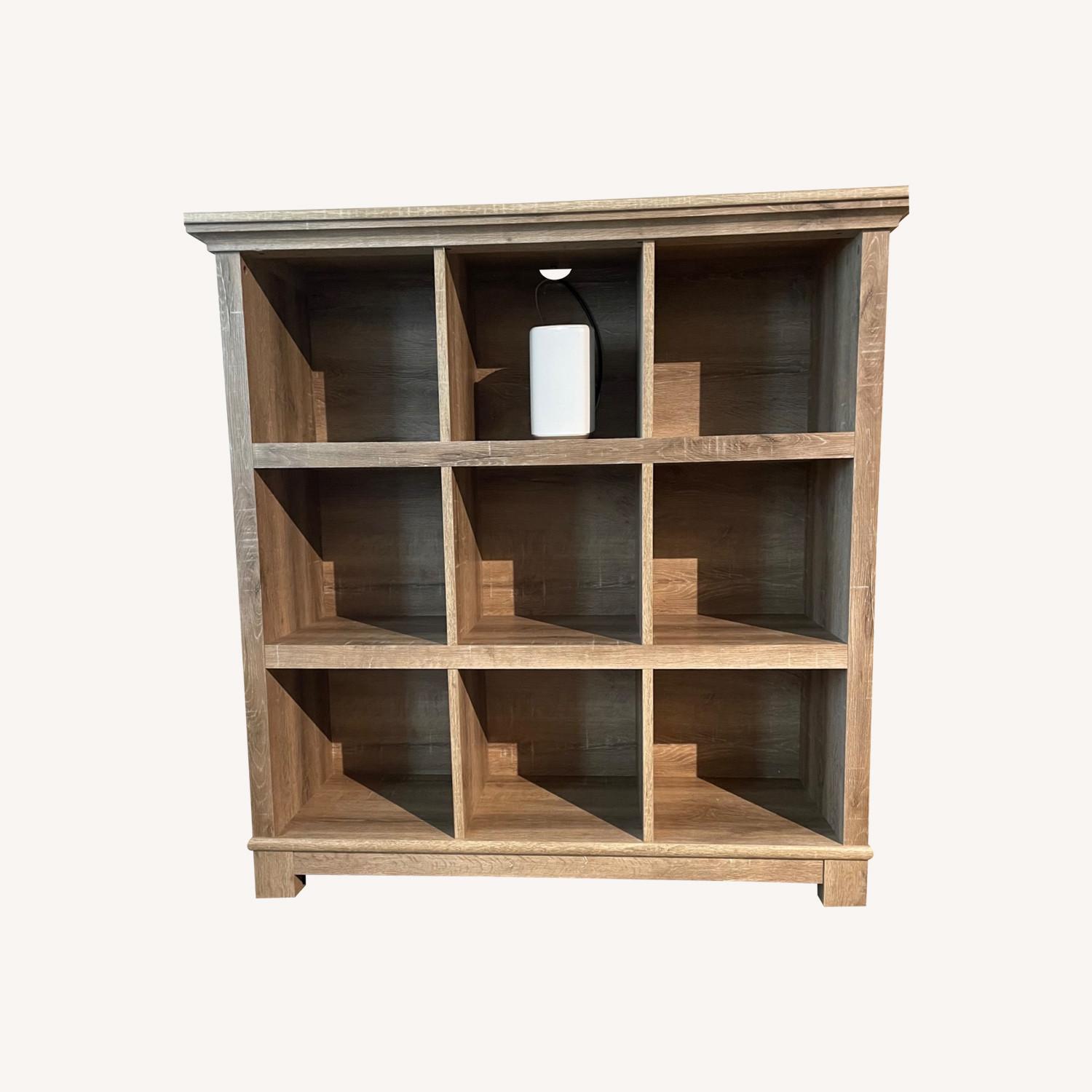Seller's Notes:Sauder Garden Villa 9-Cube Organizer, Orchard Oak Finish. I bought this less than one year ago and it is in excellent condition. The 9 cubes each accommodates 12 x 12 organizing bins. The white box inside the cube is not included.