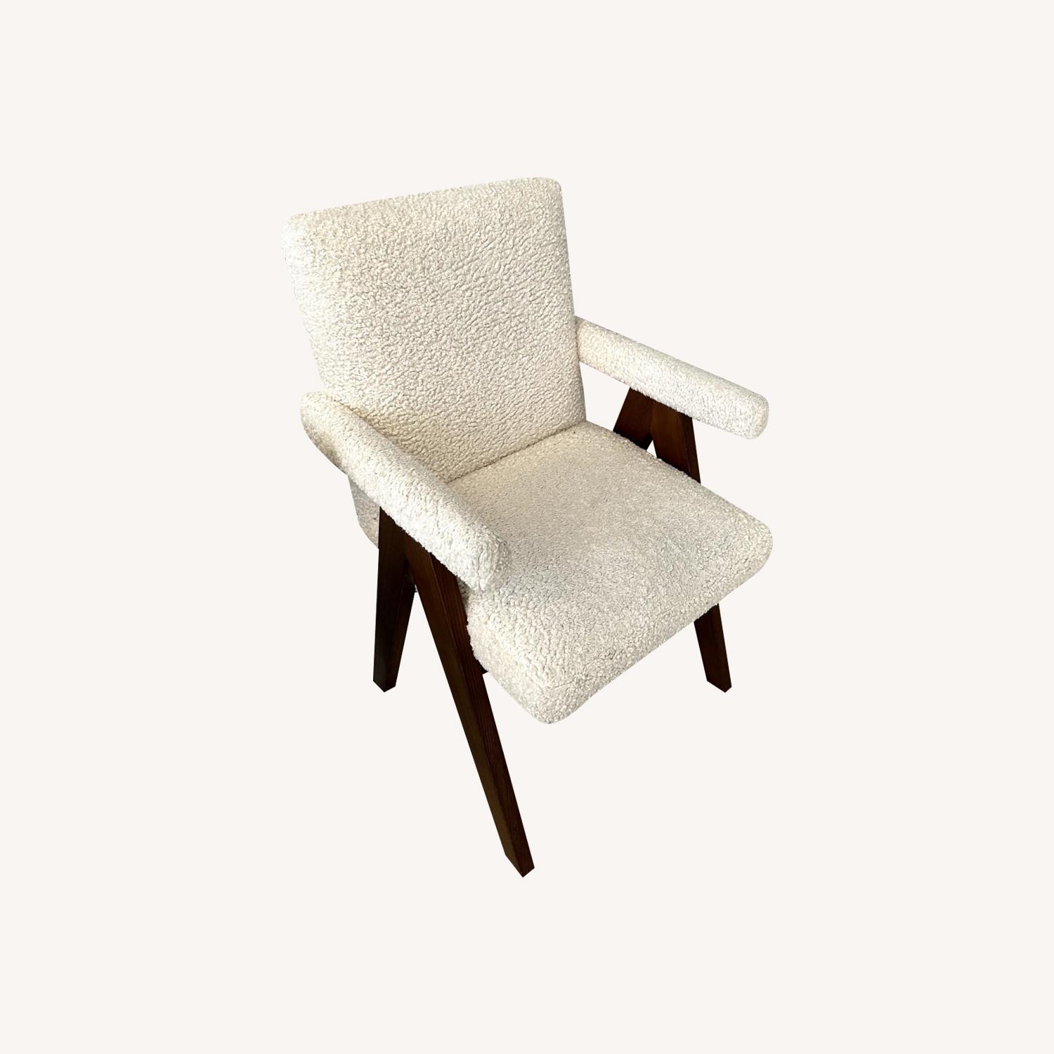 Seller's Notes:Very comfortable boucle and wood arm chairs. We love them but are too large for our new space. Minor wear on the seat
