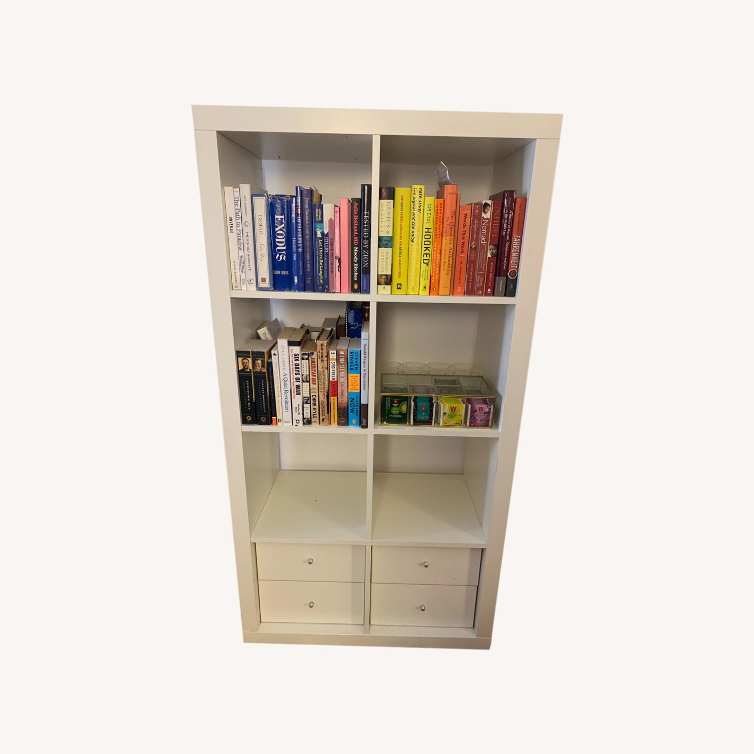 Seller's Notes:This bookshelf is extremely sturdy (on the heavier side, not your wobbly bookshelf that you worry about). I used it to store a ton of books, plus used the bottom shelves for liquor. This will last a long time and has held its crisp white color! There is a small blemish on the right panel of the bookshelf that can be fixed (you can peel off the padding and replace), which is included in the photos.