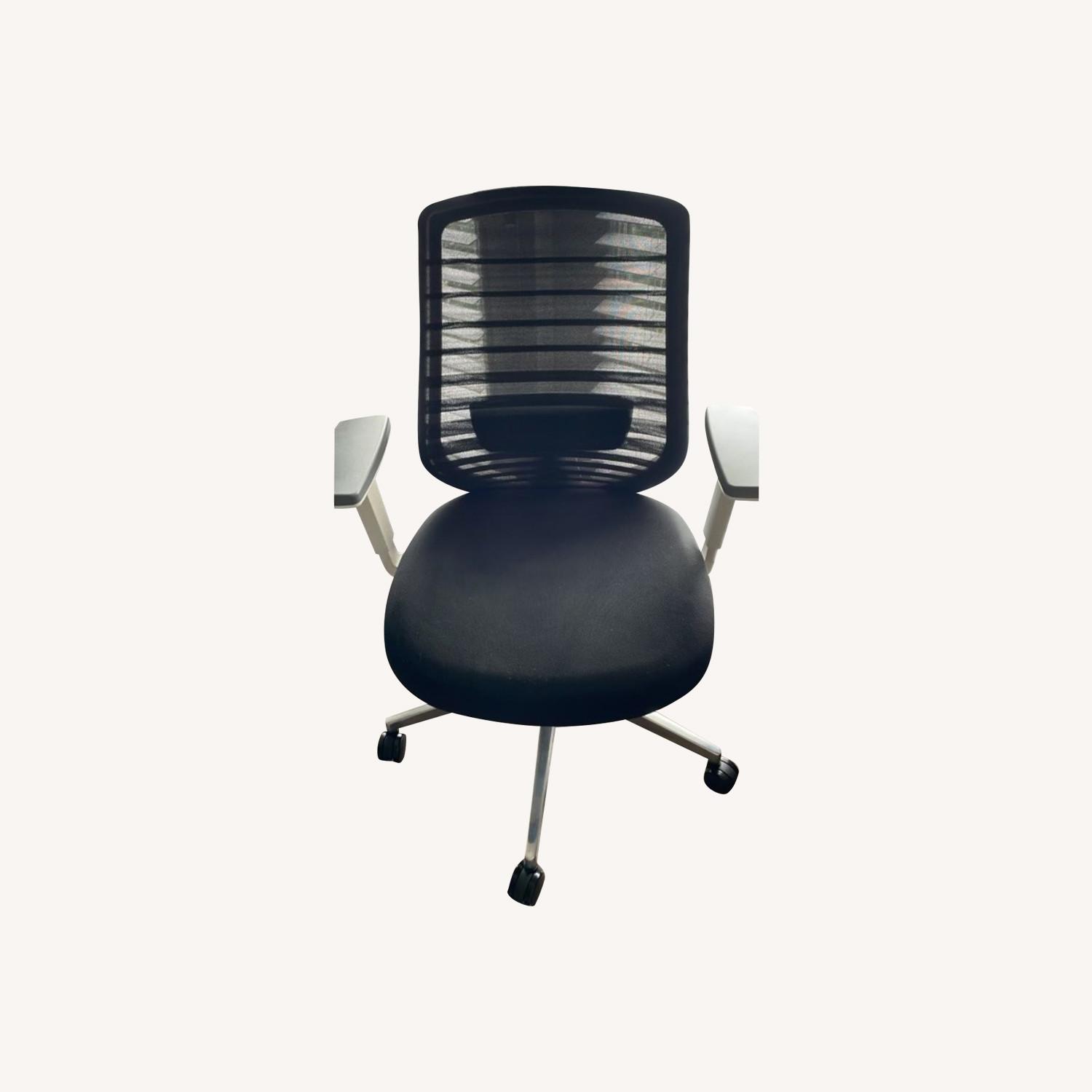 Seller's Notes:This ergonomic chair comes assembled and has been a comfortable office chair for me. I'd keep it if I wasn't moving! It's a black seat with a white frame.
