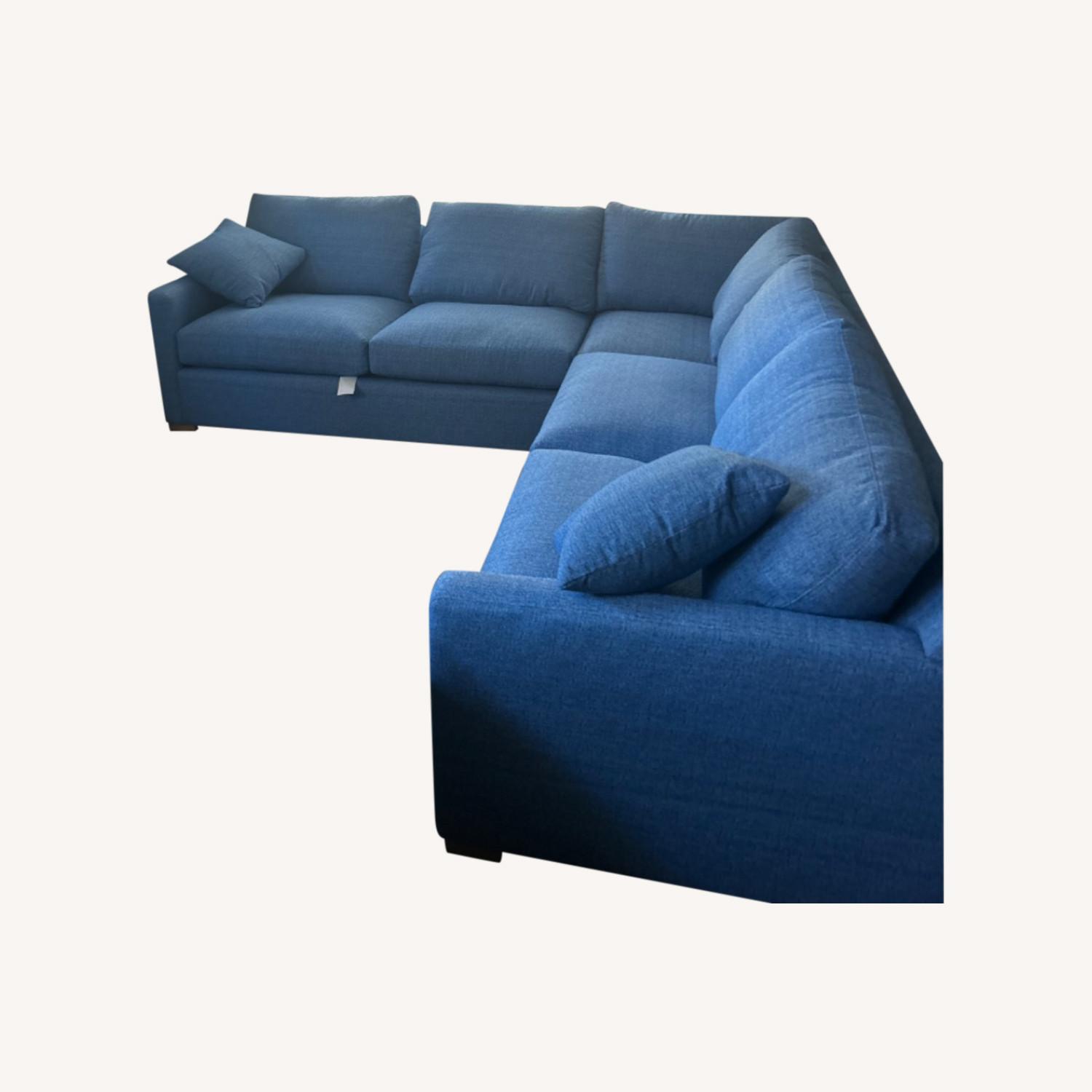 Seller's Notes:BRAND NEW custom made Braxton Culler 3-piece Bel-Air sectional with Performatex indoor/outdoor performance fabric. Woven fabric with various shades of blue, coastal/beach house vibe. Couch was delivered from Sophia, North Carolina early January 2024 and is essentially brand new. Ultimately it’s too large for our living room (118x118”) and we’ll need to find a smaller replacement. It’s incredibly comfortable and those who are familiar with the brand will know that Braxton quality is unparalleled. Couch also comes with two matching ottomans (retail well over $500 each) as well as two matching throw pillows. Delivery costs covered!