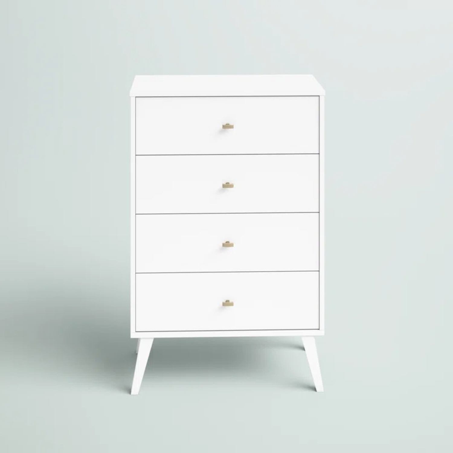This versatile 4-drawer chest elevates any room with extra storage and a clean, modern look. It's built from solid pine and engineered wood in a neutral finish, and the four drawers give you plenty of room for storing your clothes, board games, or dinnerware. They're accented with minimalist brushed brass metal hardware. Safety stops on the drawers keep fingers from getting pinched, and a wall anchor is included for extra stability. It is backed by a 5-year warranty from the manufacturer.
