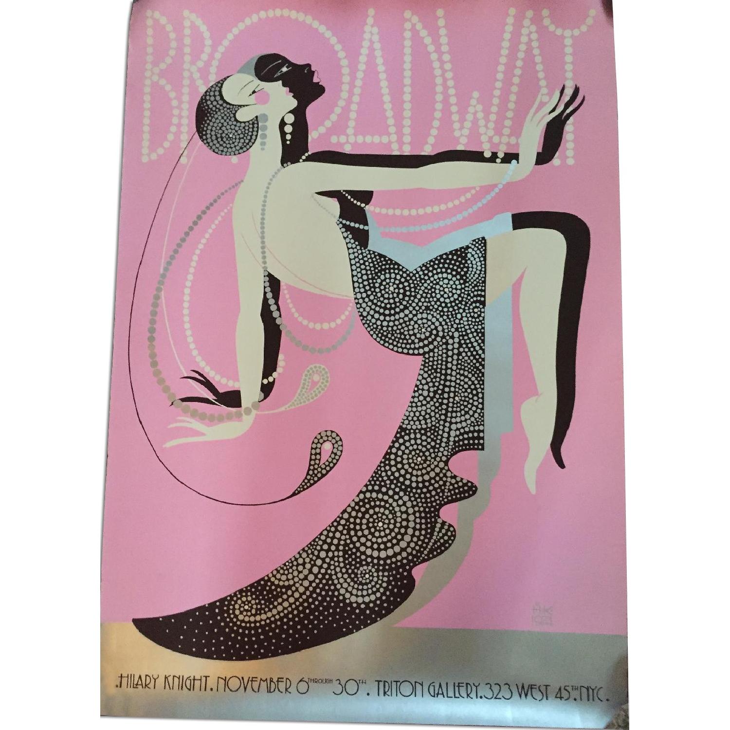 Seller's Notes:"Broadway" poster by Hilary Knight for an exhibit at New York's Triton Gallery in 1974. Hilary Knight is the famed illustrator of the "Eloise" books and of many Broadway posters. Art Deco style with pink, brown and silver tones.