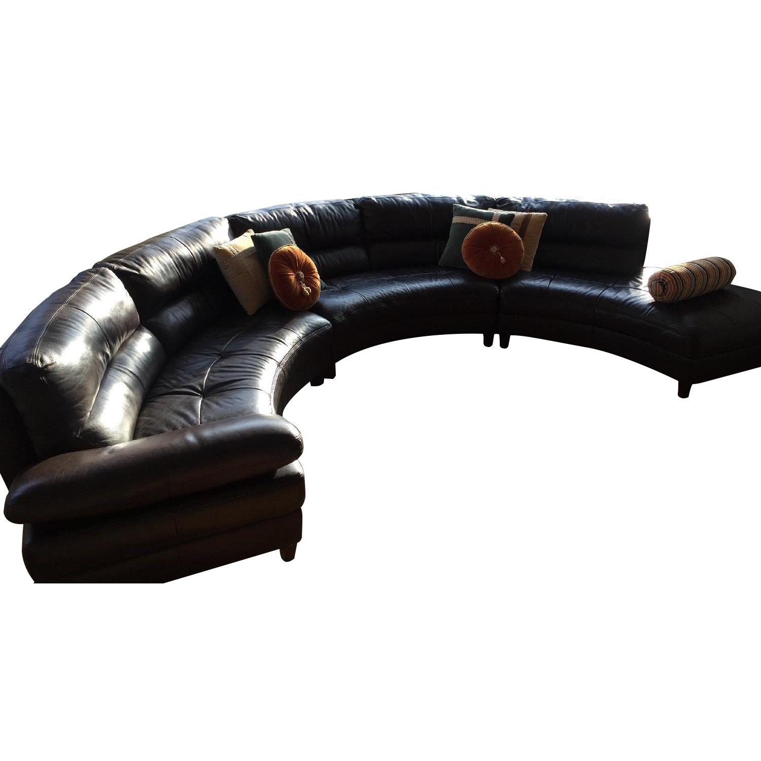 Brown Circular Leather Sectional Sofa