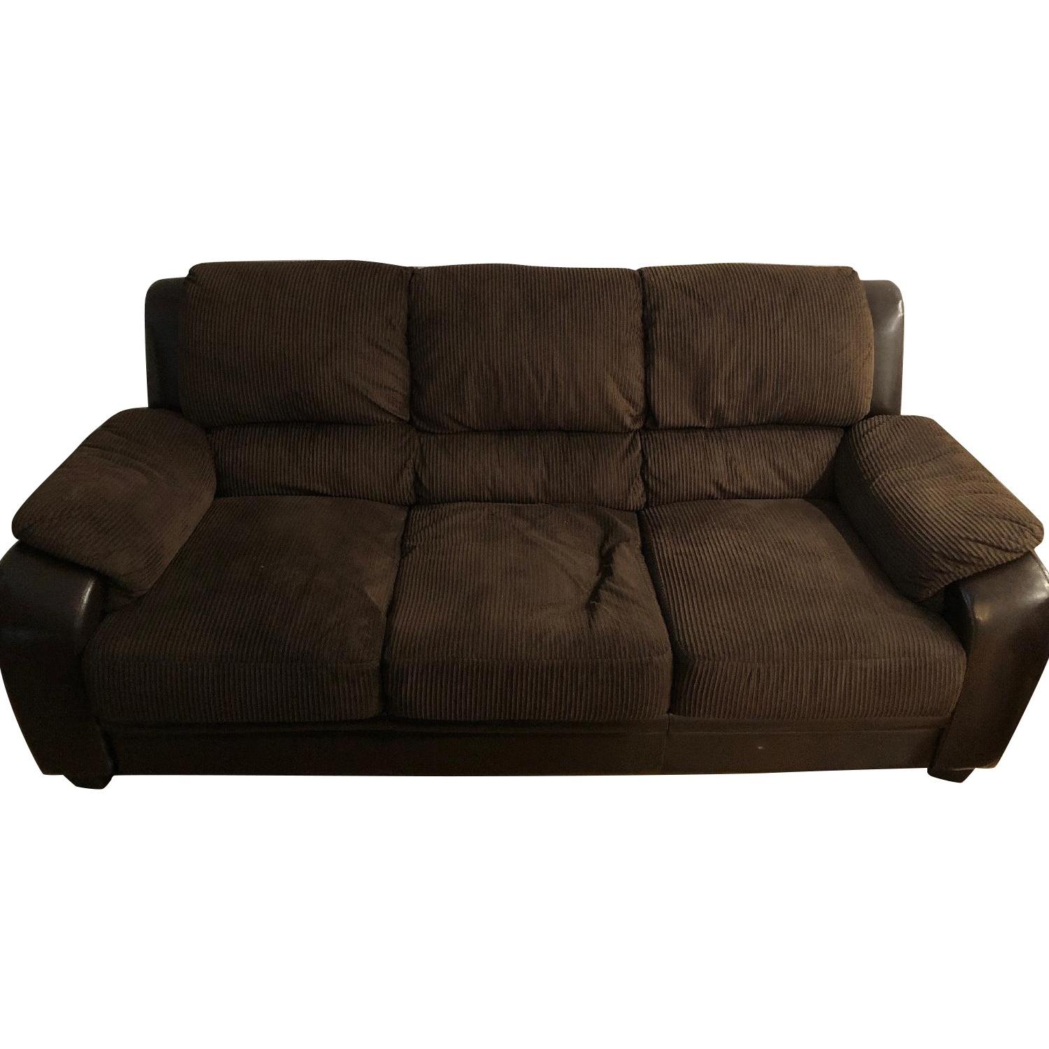 Brown Corduroy Fabric Sofa w/ Dark Brown PU Base