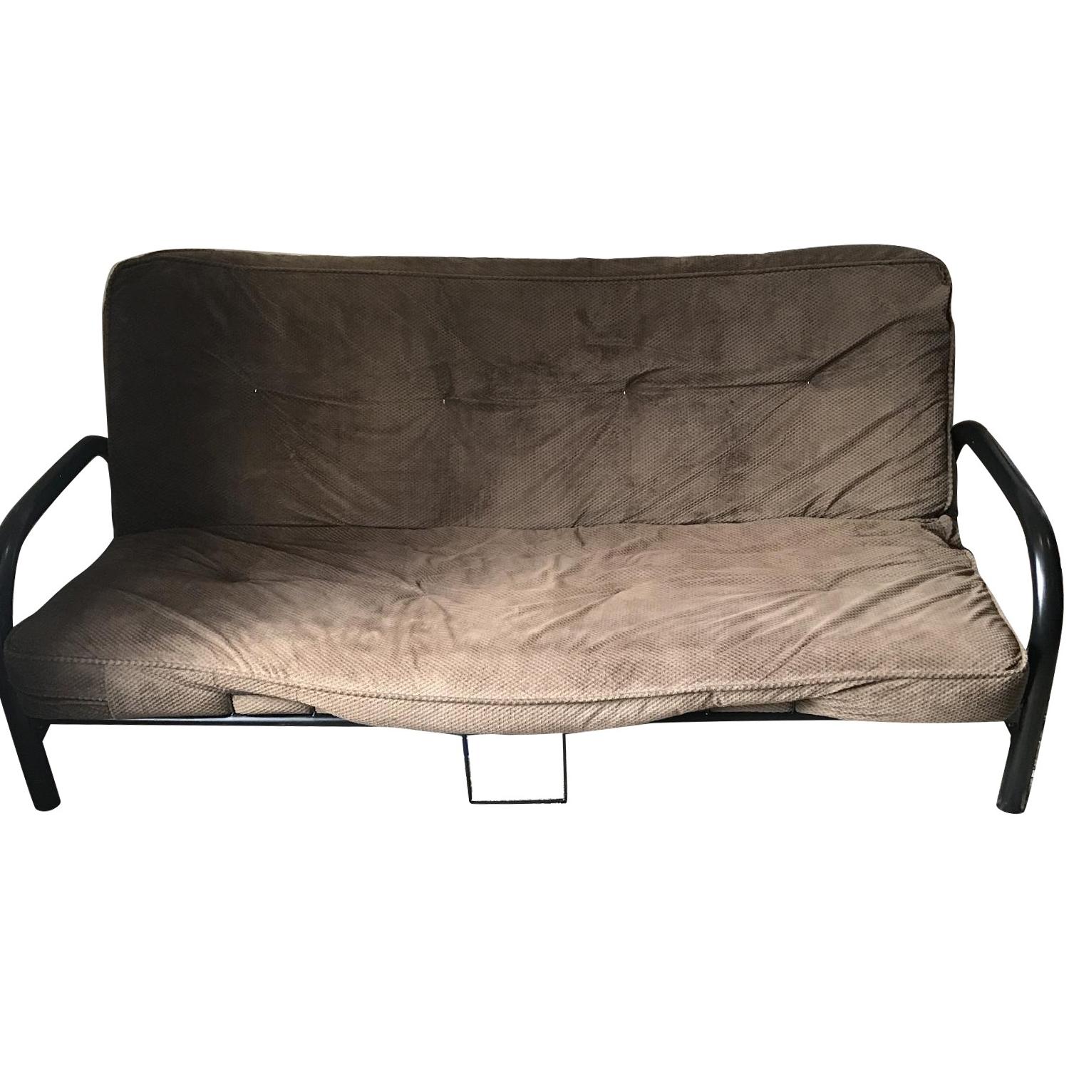 Seller's Notes:Brown futon that was originally purchased for our move to the big city. Now that we've been here a couple of years and have found a more permanent home, we're swapping this sweet thing out for a more permanent couch! This futon has been well loved, consistently cleaned and has no stains. Very comfortable after a long day or for your friend to crash on while they visit! Pillows are not included. Comes from a home with no pets or smoking.
