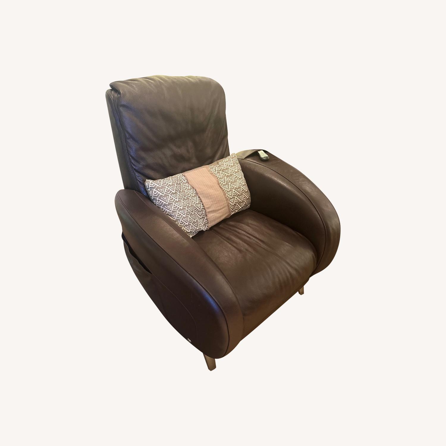 Brown Leather 4-Seat Recliner/Massager