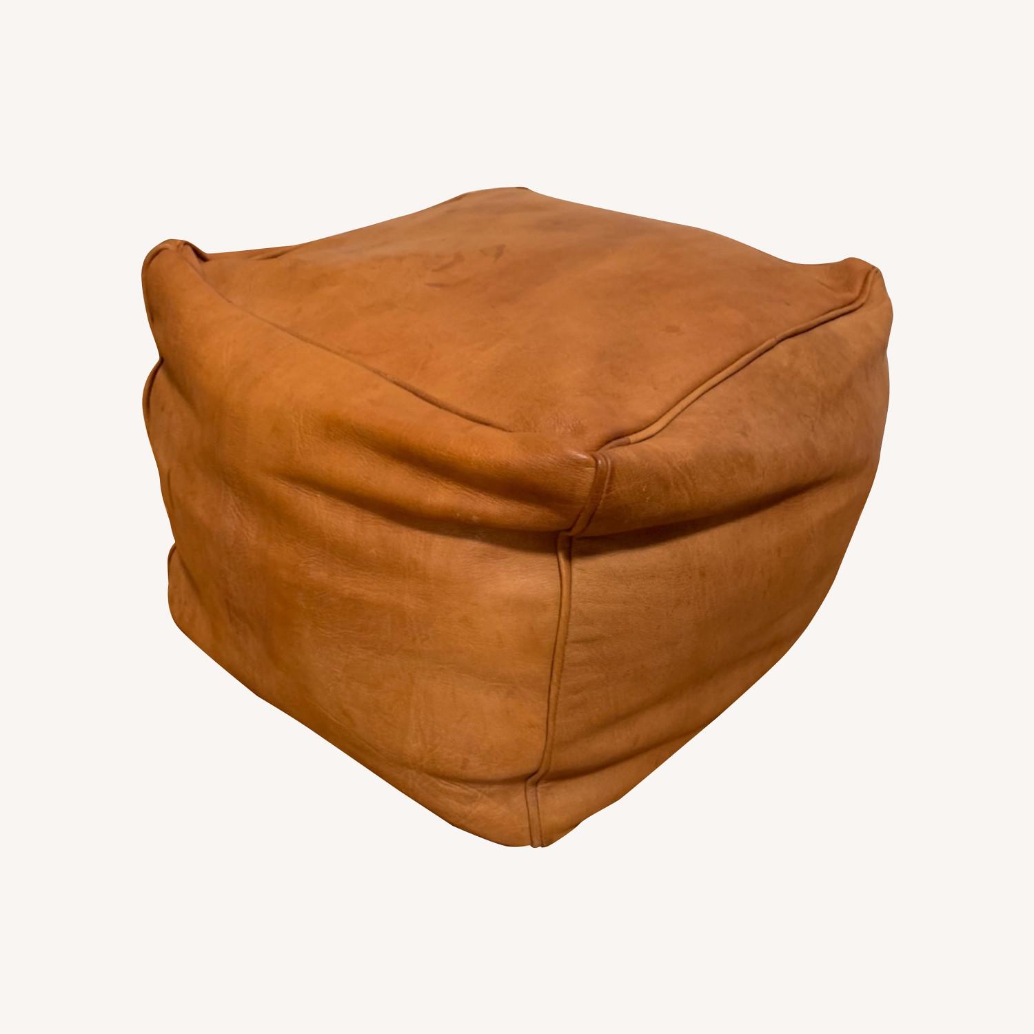Seller's Notes:This is a leather ottoman, bought at an artisinal shop. It's great for putting your feet up, placing a tray on, or even additional seating. There are some stains on it, not too bad. I got this without any filling in it, but have since filled it, so the ottoman will come with filling, which makes it somewhat hefty for it's small size.