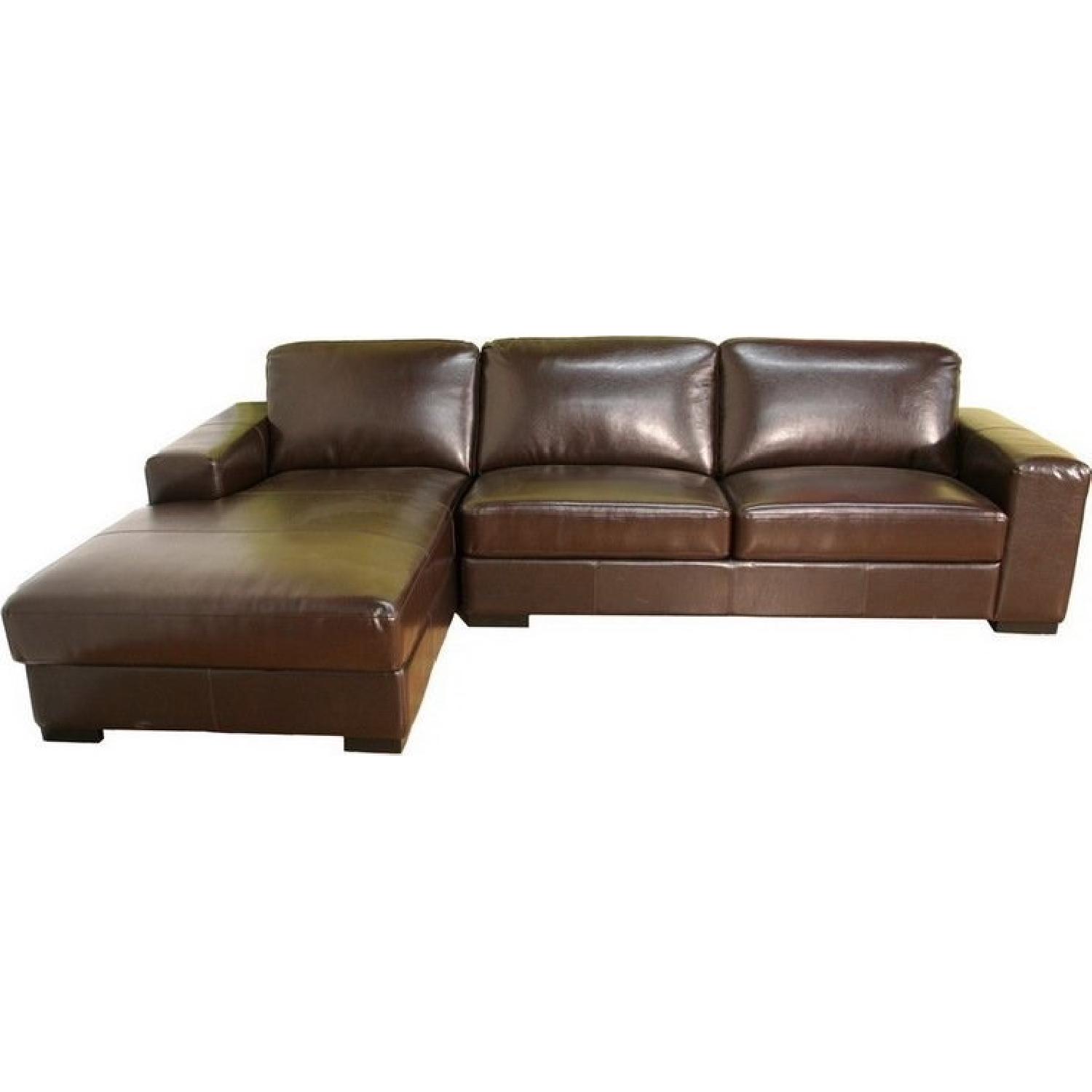 Seller's Notes:Like new(few months of use by only one person) brown leather sectional with left face chaise, very comfortable!!! Contemporary 2-piece sectional sofa Brown leather Black plastic legs with non-marking feet Sofa and chaise attach together Foam cushioning (seat cushions are not removable) Wipe clean with a mixture mild detergent and water Overall dimensions: 116.5 inches wide x 68.5 inches deep x 33 inches high Sofa dimensionss: 79 inches wide x 34 inches deep x 33 inches high Seat dimension: 69 inches wide x 21 inches deep x 17.5 inches high Chaise dimensions: 37 inches wide x 68.5 inches deep x 33 inches high Seat dimensions: 25 inches wide x 56 inches deep x 17.5 inches high Arm height: 26 inches