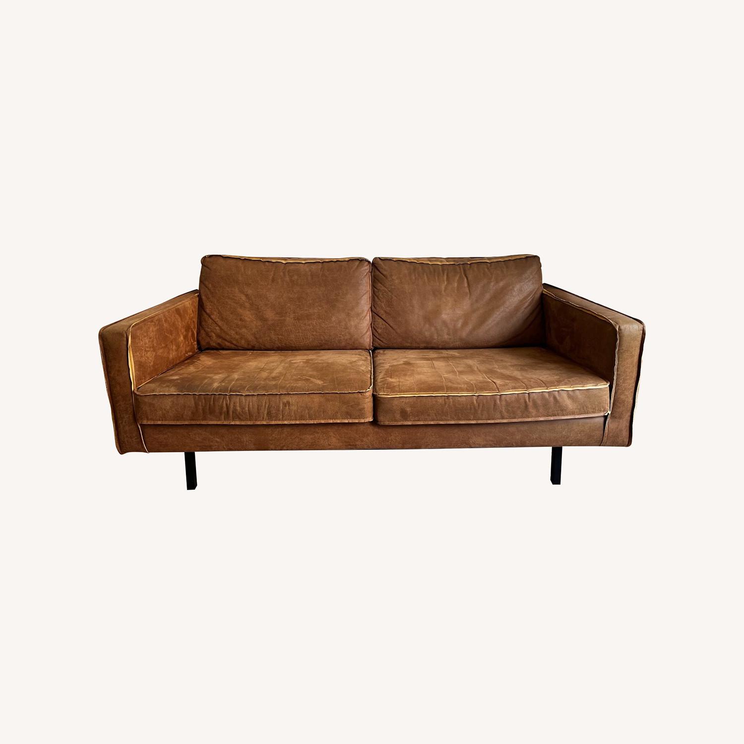 Seller's Notes:This amazing real leather sofa has travelled from London to New York. We got it for our London apartment in 2021 and when we moved to NYC in 2022, it came with us. It is in great condition, since leather ages very well. There are very subtle signs of use, which can be seen in some discoloration and gentle marks from scratches and general use.