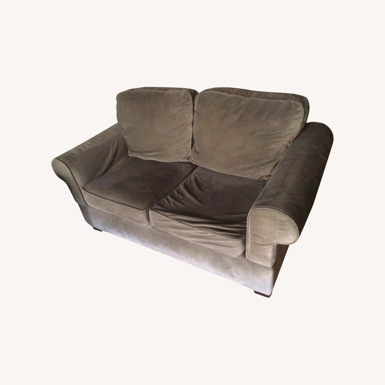 Seller's Notes:Not trying to make $$; happy to sell for as low as AptDeco will let me! Loveseat and pull-out sofa bed. About 61" and 83", respectively. They're brown, low-pile microfiber. Cushions are firm, replaced by the last owner a couple years ago. Fabric is soft and apparently cat-proof, because my cats think everything is a scratching post and you magically can't tell. There are rips where the cushions attach to the back via velcro, the wooden legs are kind of scuffed, and there's one small hole in the fabric. But they're sturdy and have plenty of life left.