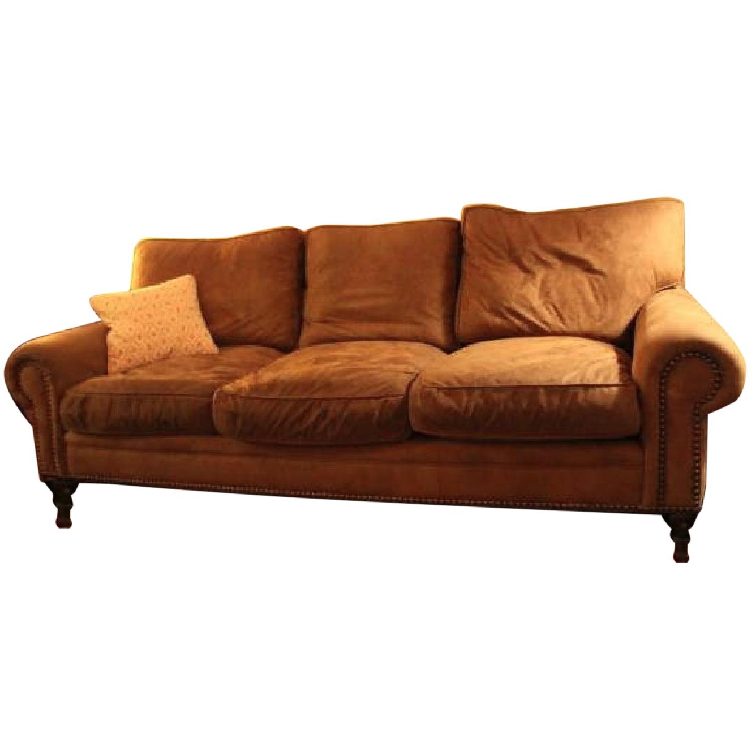 Seller's Notes:I'm selling my beloved full-sized couch because it won't fit in my new apartment. It sleeps one (photos show a pair of pants on the couch for size comparison). Some friends lucky enough to sleep on it tell me it's the best sleep they've had in years. It's an elegant, comfortable piece of furniture that I thought I would keep for years: now you have a chance to! The details: - approx 7 feet long - Brown microsuede (easy cleaning) with brass furniture tacks - seats 3 (4 at a pinch) - sleeps 1 (just take off the back cushions) - Custom design made by Classic Sofa, now at http://stoneandcodesigns.com/ - a variation on the Hampton design (http://stoneandcodesigns.com/hampton-sofa/