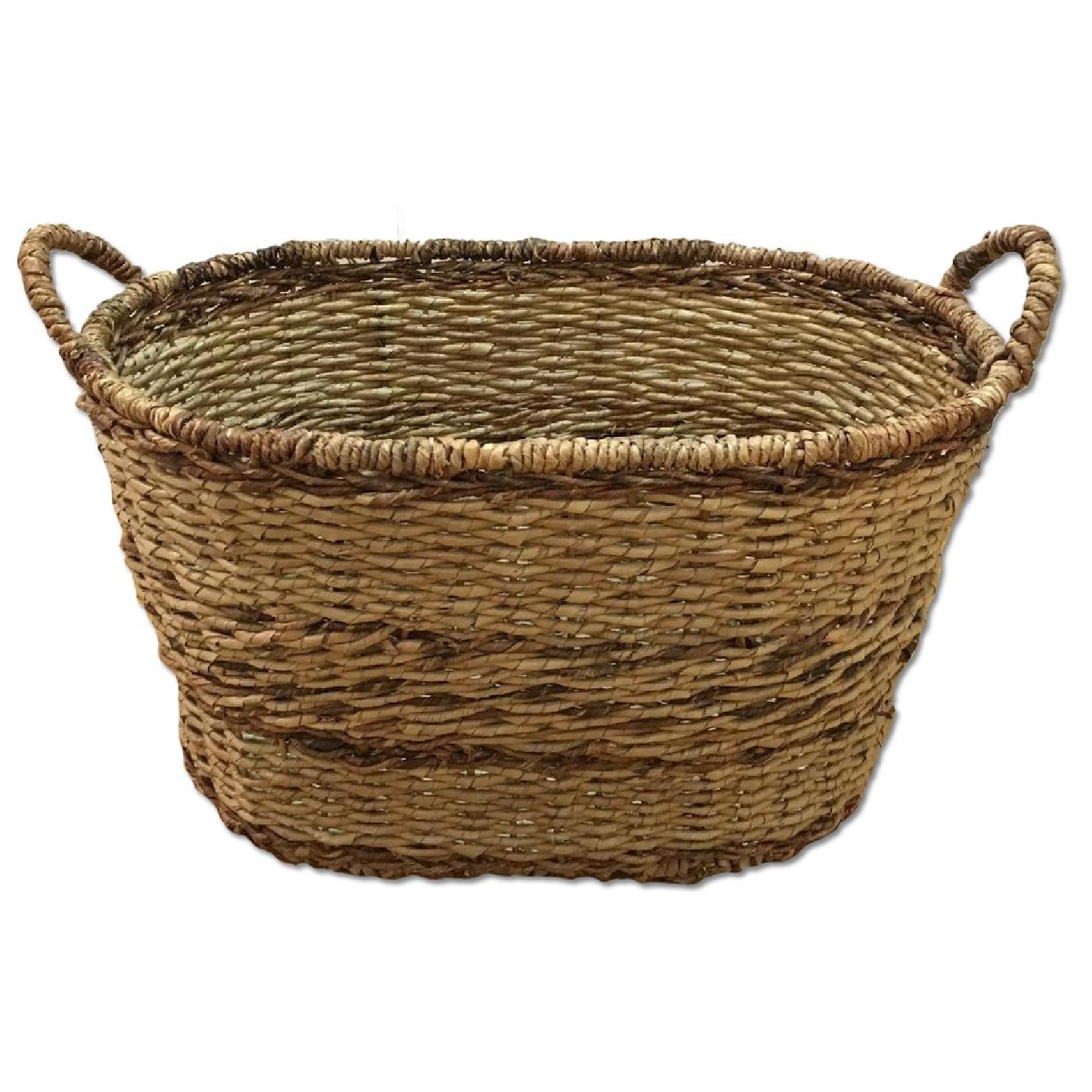 Seller's Notes:Decorative wicker baskets used for storage in very good condition. We are moving and cannot take them, but we have loved them for years. Super durable yet light weight. Main picture is natural colored and dimensions are listed. Darker brown is a sqaure 12.5" x12.5" and is 12" in height.