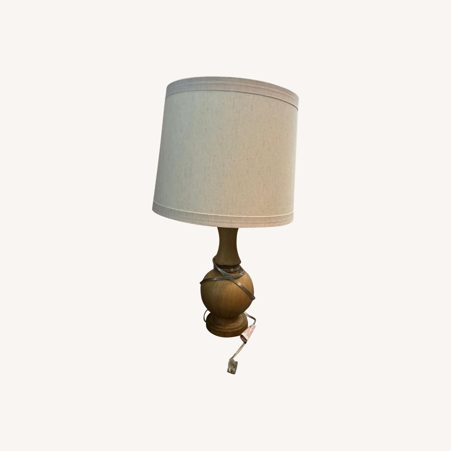 Brown Wood Table Lamp with Cream Linen Lampshade