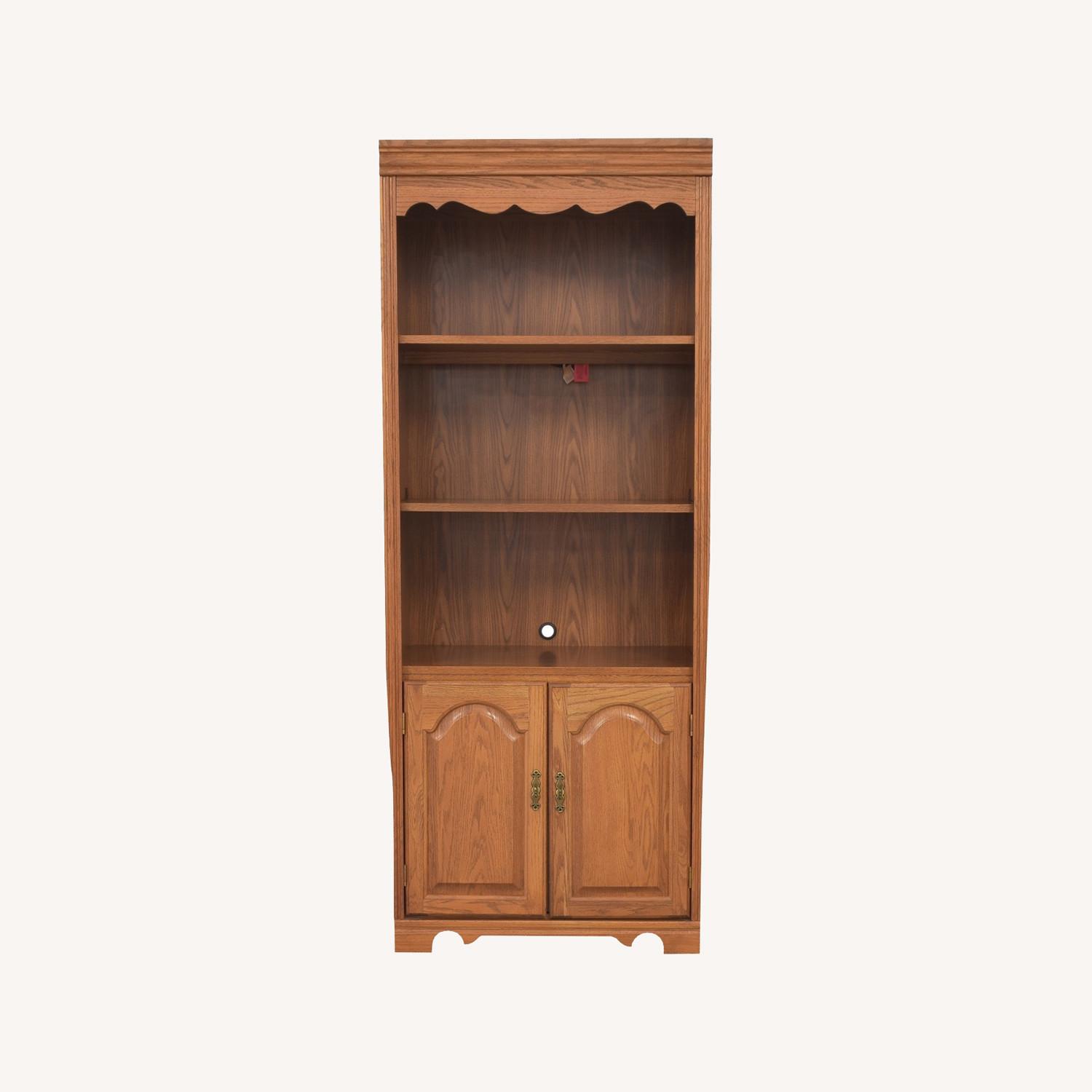 Seller's Notes:Broyhill Furniture bookcase in very good condition. 5 shelves with 2 shelves concealed behind 2 doors. The bookcase shows the sort of wear that one might expect for furniture that is 30 years old (some minor scratches), but it is very usable and ready for a new home.