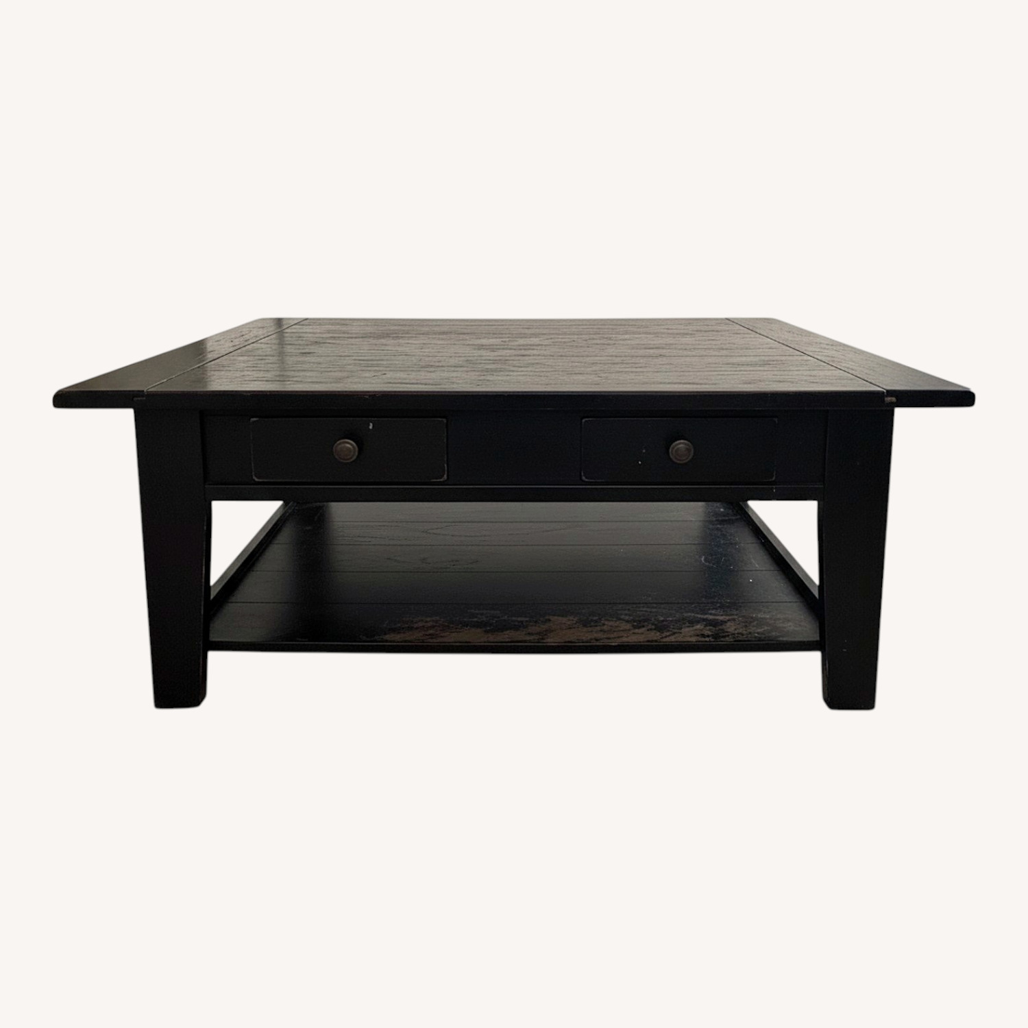 Wear and tear details: The style of this coffee table involves fading, scratches, and cracks. It is how it came from the store. There are some marker stains.
