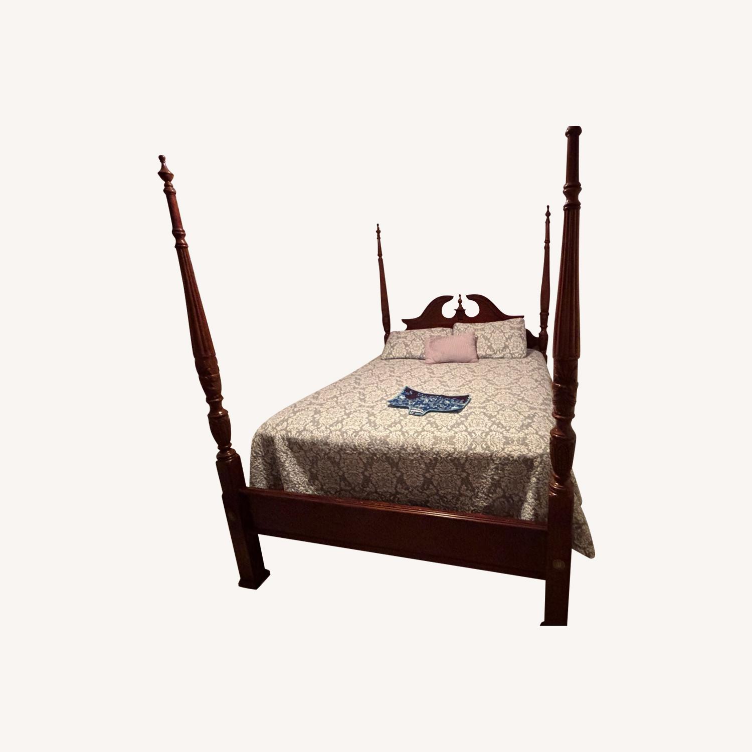 Seller's Notes:The Broyhill Fully Functional Queen and Bed is in a traditional brown wood style. This set is designed for a bedroom, with compatibility for queen mattress sizes. The Broyhill brand ensures quality and functionality. Comes with a foot stand that will be included. The bed has a nice clearance of 12 inches from floor to box spring and is very comfortable. Good for a starter home.