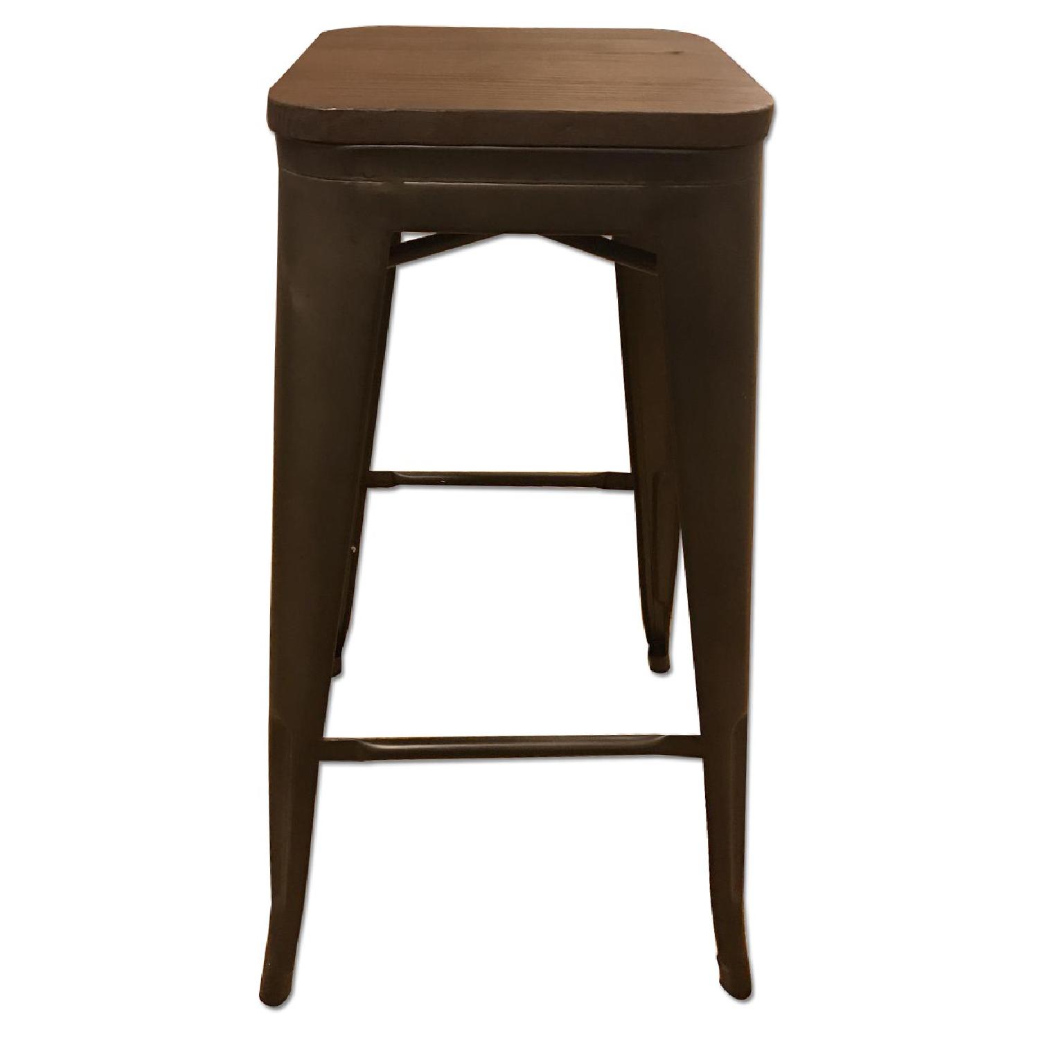 Seller's Notes:4 great bar-height stools, less than 6 months old. Metal base with dark wood seat.