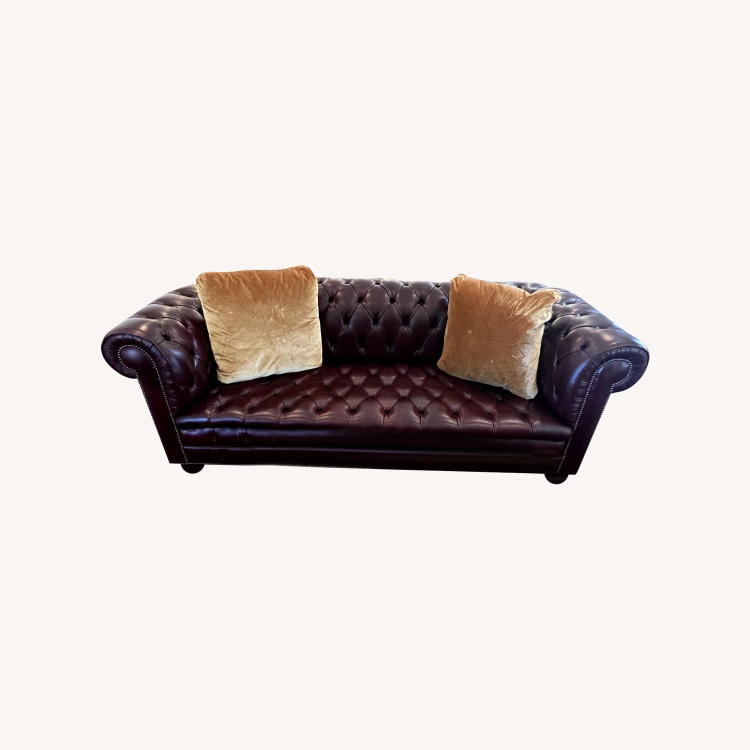 Burgundy Leather Upholstered Chesterfeild Sofa