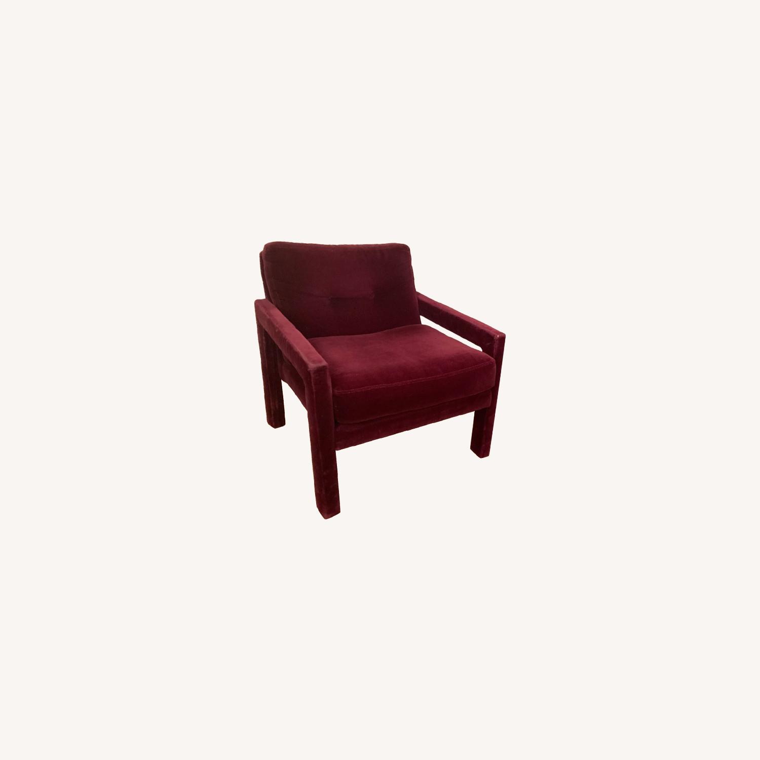 Seller's Notes:Awesome pair of 1970s Milo Baughman for Directional Parsons lounge chairs. Clean lines and full upholstered burgundy velvet on all sides. Form meets function with this classic vintage pair that's been given new life. Finest quality workmanship and statement chairs.