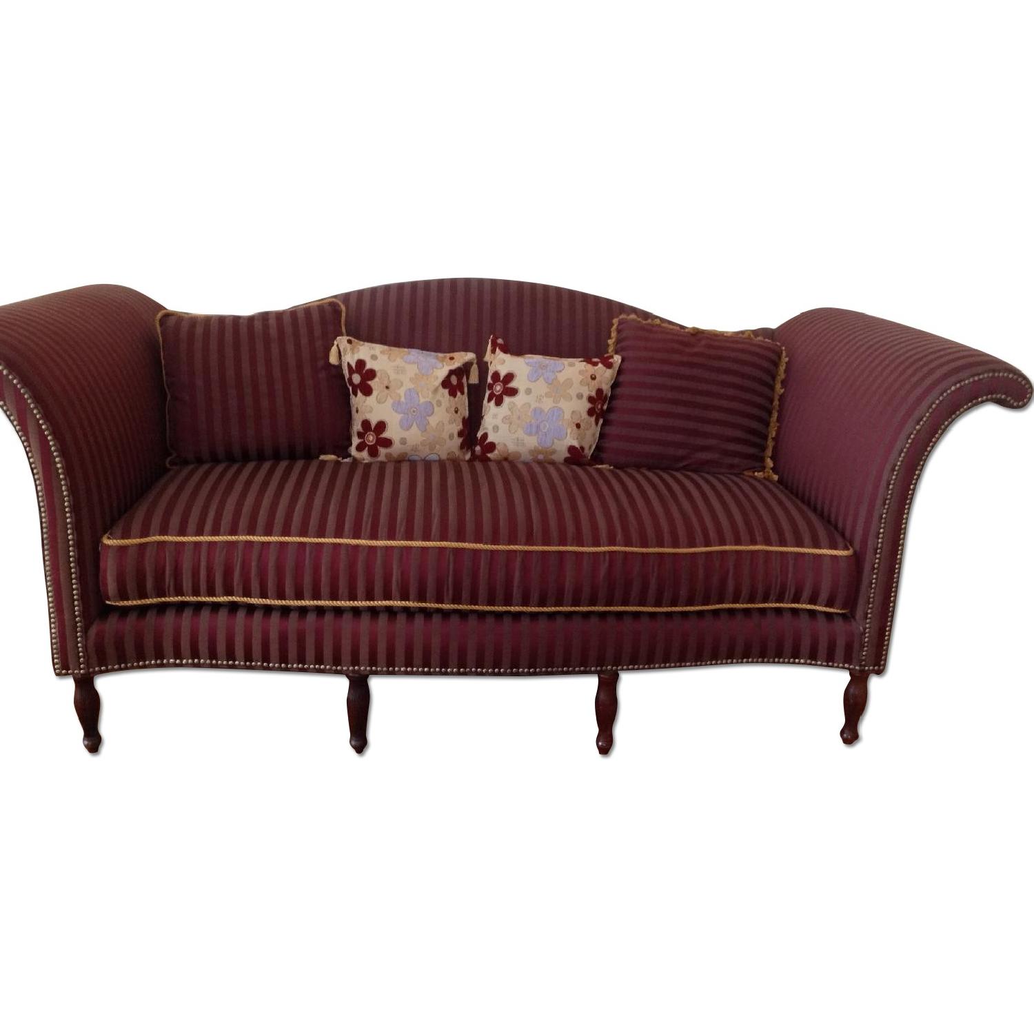 Seller's Notes:COLOR IS MORE A ROYAL TYPE OF MAROON / BURGUNDY THAN BROWN Sofa purchased in North Carolina in by my retired aunt and uncle and has been in the one pet-free / smoke-free home with no kids since its purchase. It is in like new condition. Measures 95 in. wide x 44 in. deep. Includes toss pillows shown in photo. Any reasonable offer considered.