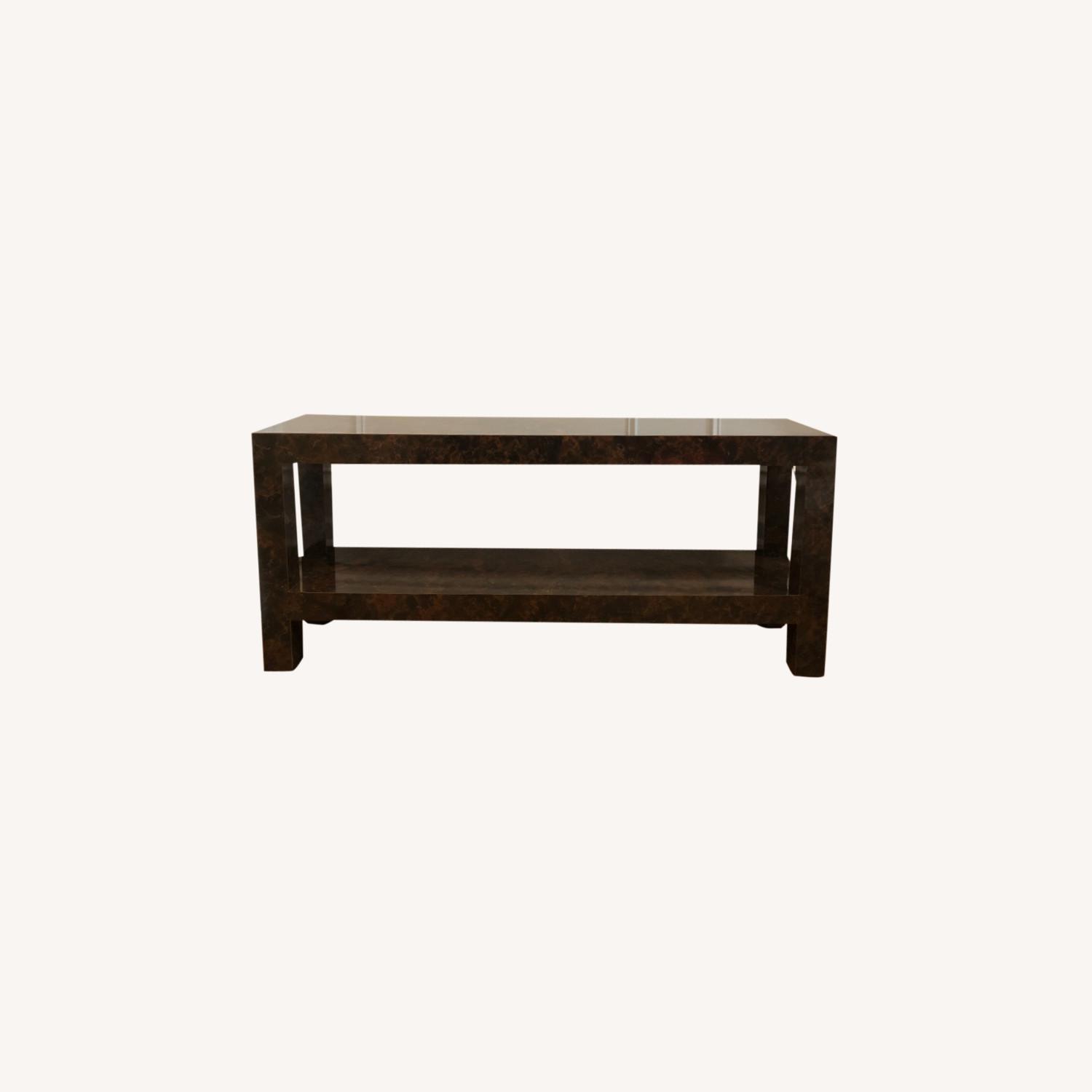 Seller's Notes:Walnut burl veneer console table. Vintage item. Decent condition - a few chips as noted in photos. The veneer looks like real wood but I’m not 100% sure. The pattern is not repeating.