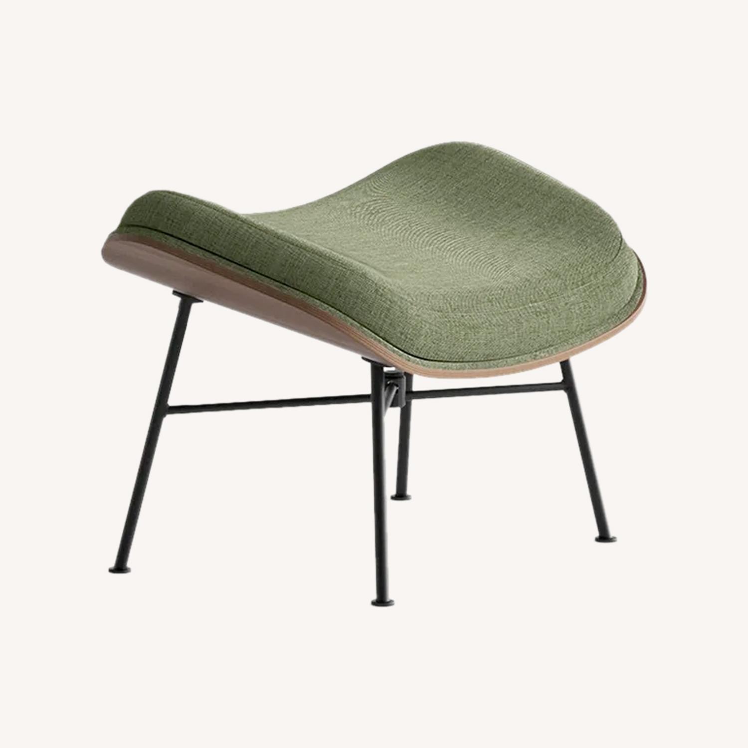 Seller's Notes:The ottoman is in the Moss Green all-fabric version, selling on Burrow for $303 with 4.54 stars and 83 reviews as of listing.
