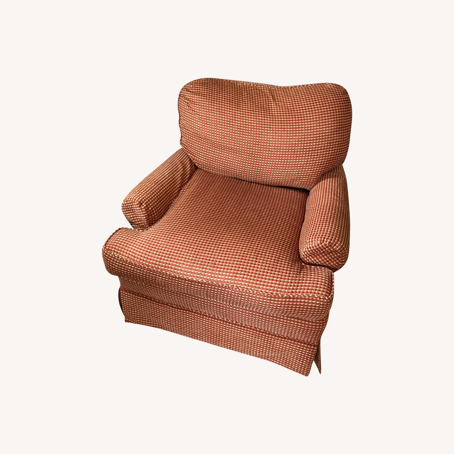 Seller's Notes:Comfortable red and white armchair with swivel base and rocker. Selling just because I'm moving and changing up my decor style!