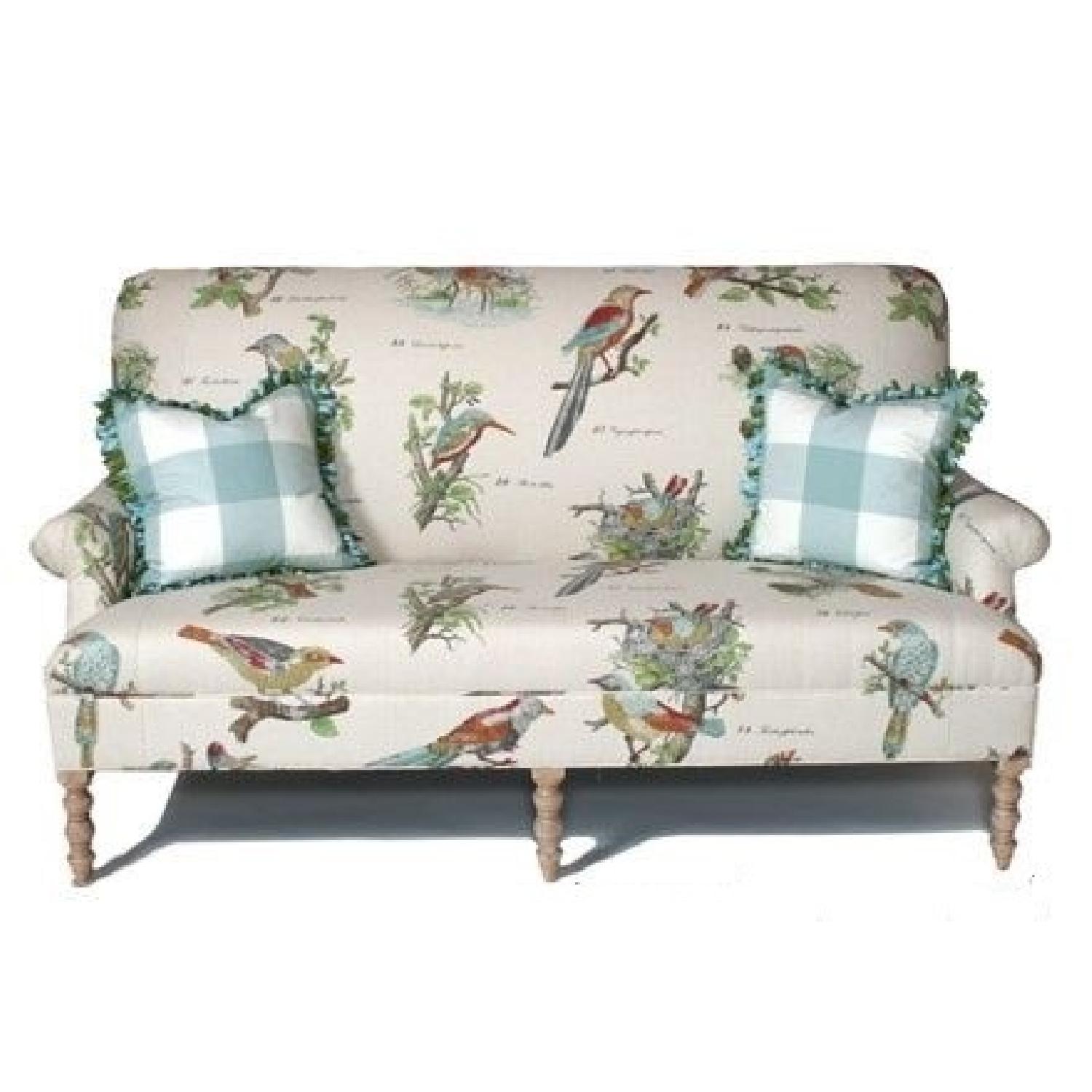 Seller's Notes:- James Settee style couch with Allora Fabric Collection - Selling because I had to downsize to smaller apartment - Barely used in old apartment (maybe 10 sittings) - No pet, smoking, spills exposures - Does not come with original cushions