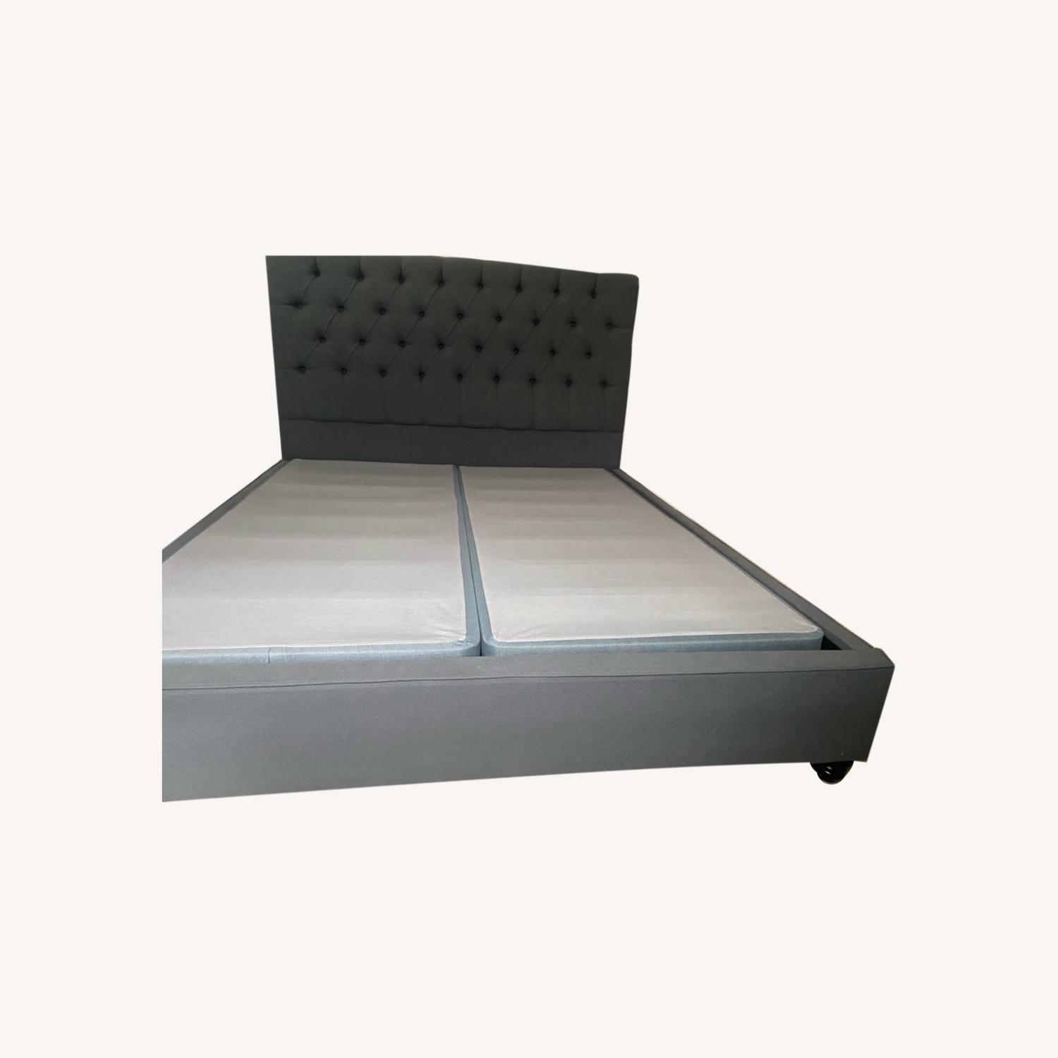 Seller's Notes:New California king upholstered bed frame with foundation / box spring