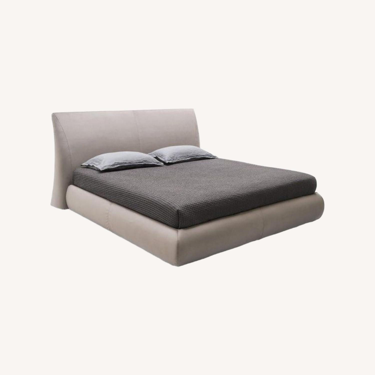 Seller's Notes:Just bought and doesn’t fit in my space! Michigan King size bed by Calligaris is fully upholstered with a removable ring cover. The wooden slat frame rests on corner supports, making the bed stable and durable. The openable slatted frame supported by pistons gives access to an internal storage compartment with a double position (inclined and raised – please refer to schematics).