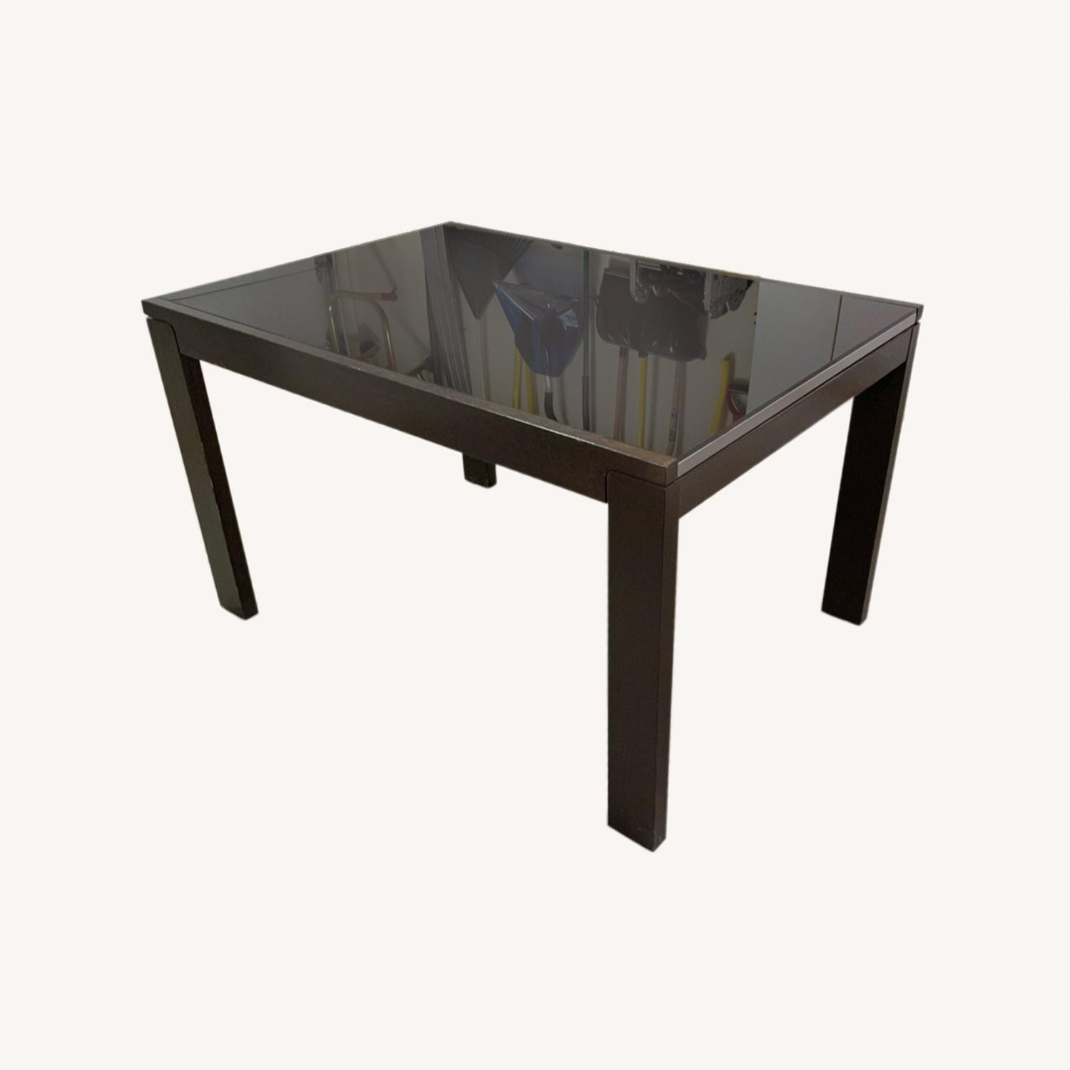 Seller's Notes:I did not purchase this set, it was left by the former owner in an apartment I own. Table and chairs are clearly labeled Calligaris, but Model/Collection is not noted and I don't see anything in their current line that looks identical. There is a mark on the table that says it was made in 2007. Table is 29.5" high, 35.5" wide, and 51" long when collapsed, 90.5" long extended. Chairs are 18" x 18" at the feet, seat height 18", and 35" high at the back. I would have classified the whole set as "good" condition except for the front corners of the seat cushions. They have leather tops and bottoms and the bottom stitching is starting to separate as shown in the blemish photo. I would think the leather top could be glued down at those corners and be fine for a long time.
