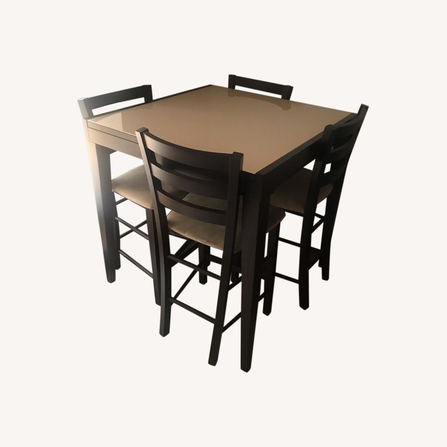 Seller's Notes:Great collapsable table with four chairs available for purchase. The table and chairs have essentially never been used. While having the item for around 5 years it was always too large for our particular space but very nice item. Due to the size of our space we really could only use one chair so their is slight use of one chair which can be seen in the photo and the others are basically like new. Even the one chair used has very minimal use and only slight discoloration from putting a black bag on it sometimes. The table is 59 inches long when extended and 35.5 inches long when collapsed. Great product just never been right for our space unfortunately.