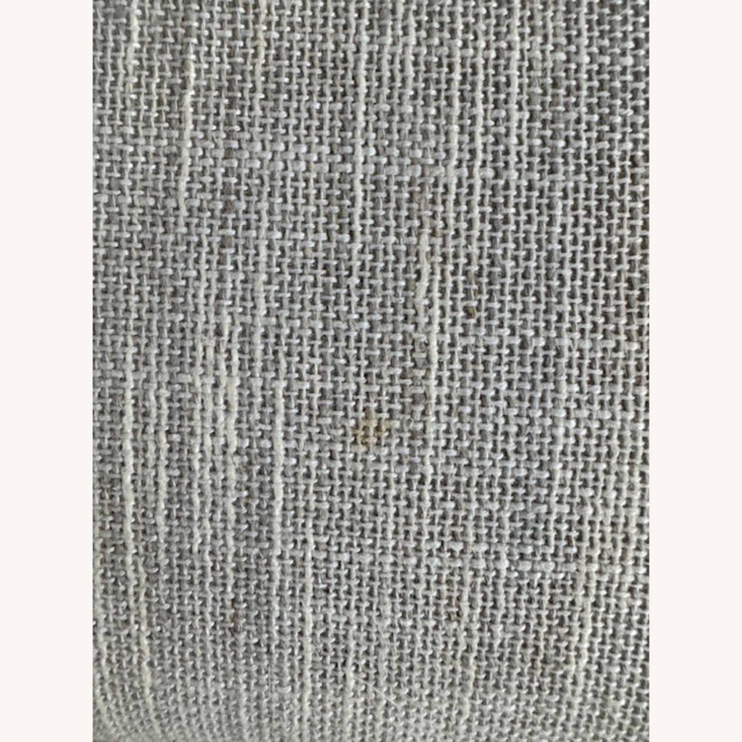Seller's Notes:For Sale: Set of 6 Calvin Klein Home Halo Upholstered Dining Chairs (2014) Elevate your dining space with this stunning set of six Calvin Klein Home Halo dining chairs, crafted in 2014. These chairs exemplify the brand’s iconic minimalist aesthetic with clean lines, a timeless silhouette, and premium materials. These are a unique find! Upholstery: Donghia gray linen fabric Frame: Polished walnut legs Style: Modern, elegant, and understated Used lightly in a formal dining room setting. The chairs remain in great overall condition with only a few light stains on the fabric and minor scratches on some of the legs, consistent with gentle use. I also used chairs with arms as side chairs for extra seating around house as needed. Only exposed to dogs, not cats. Dimensions: Overall chair dimensions: Height 30.5", Depth 18", Width 21" Detailed Dimensions: Chair with arms: Arm height mid arm 27.5, back of chair from seat about 13" Perfect for anyone looking to add designer style and comfort to their home.