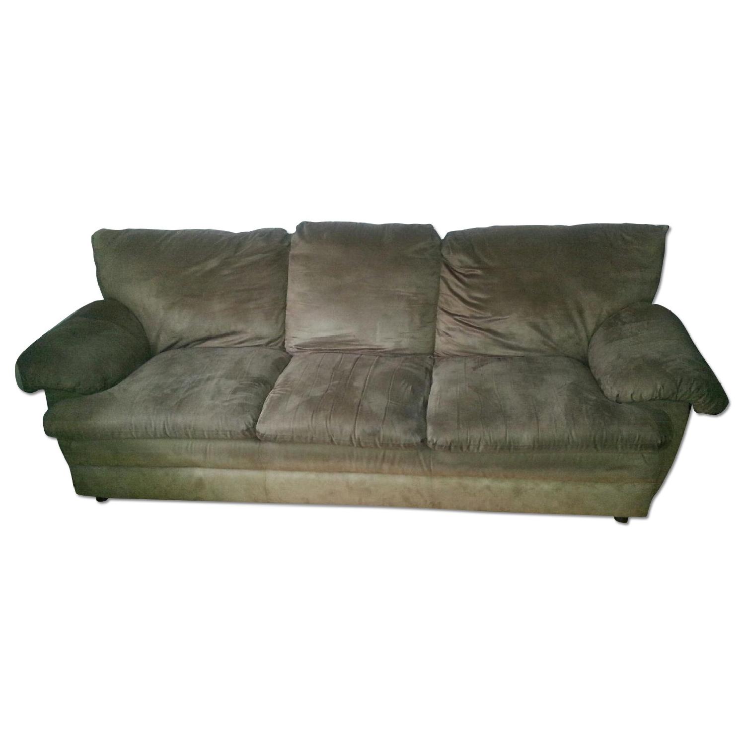 Seller's Notes:**moving to another country, so getting rid of a ton of furniture** -best couch ever! -seats 3 comfortably -random overstock item from a going-out-of biz sale @ upscale furniture store -super comfy and cozy -non-smoking + pet-free home -microfiber, camel color -one piece (cushions are non-removable) -very recently steam cleaned -very minor wear, picture with ruler is on the left arm rest almost towards the back cushion (small bit of super glue)