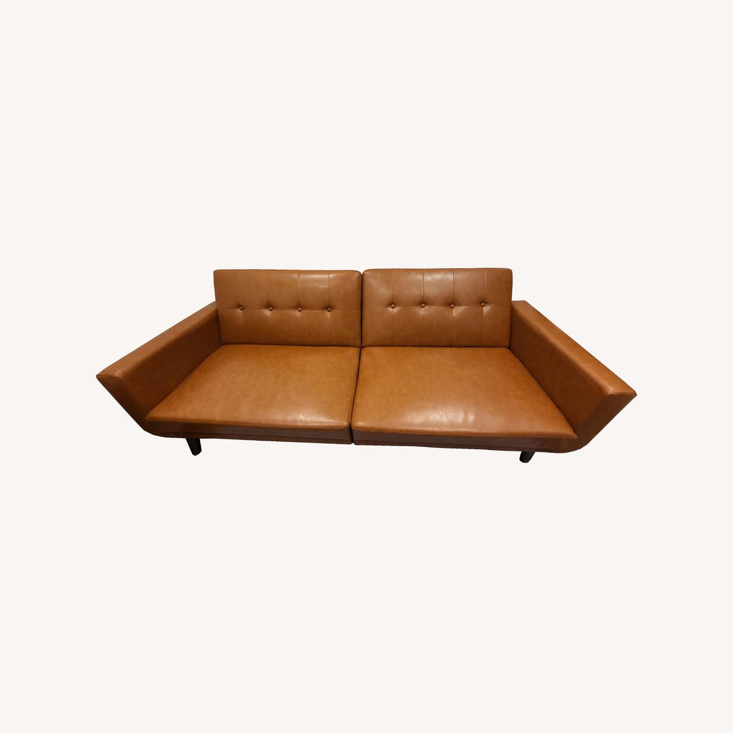 Camel Mid-Century Style Faux Leather Futon