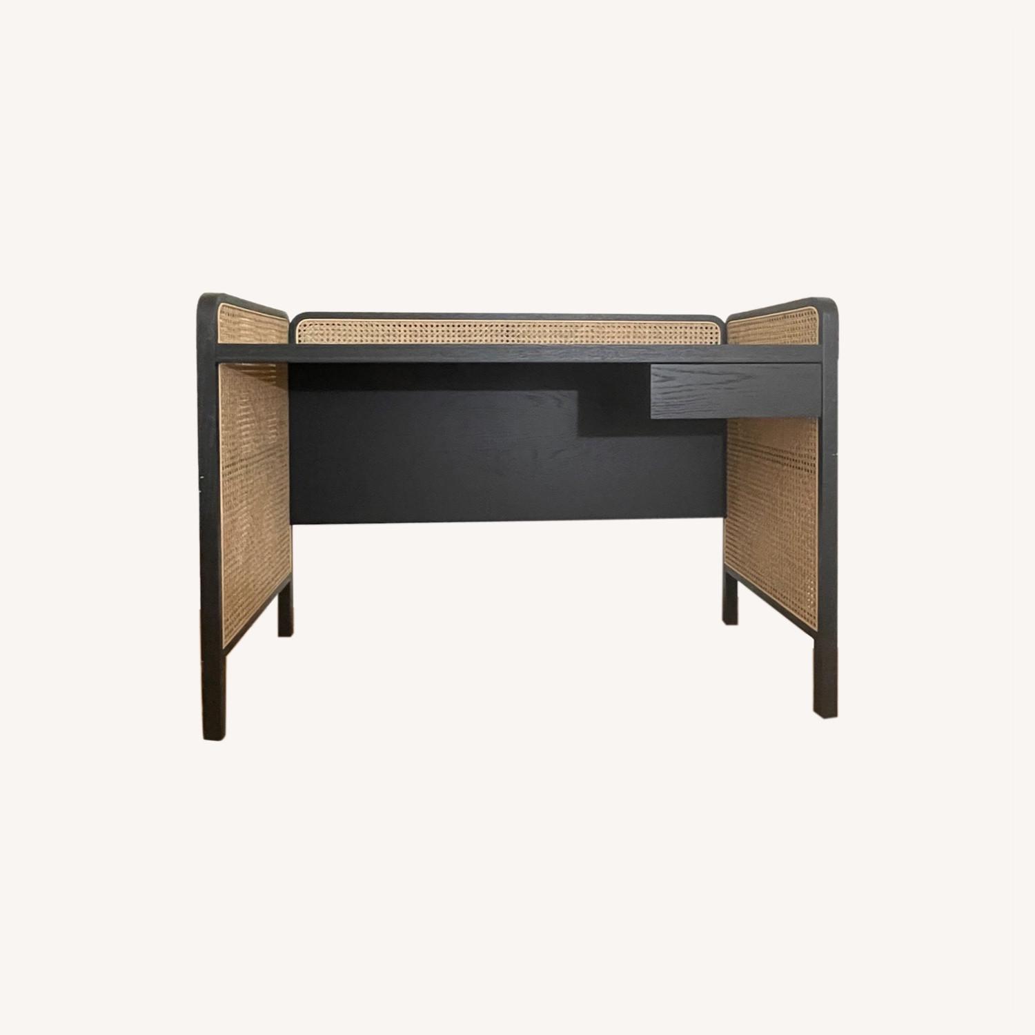 Seller's Notes:I purchased this desk from a local business in Williamsburg, Brooklyn. It was delivered to me in March 2021 and has only been used a handful of times. The frame is black stained oak and the panels are rattan. I had my apartment repainted and there are now spots of white paint on a few locations on the desk. Other than that, there are no visible flaws.