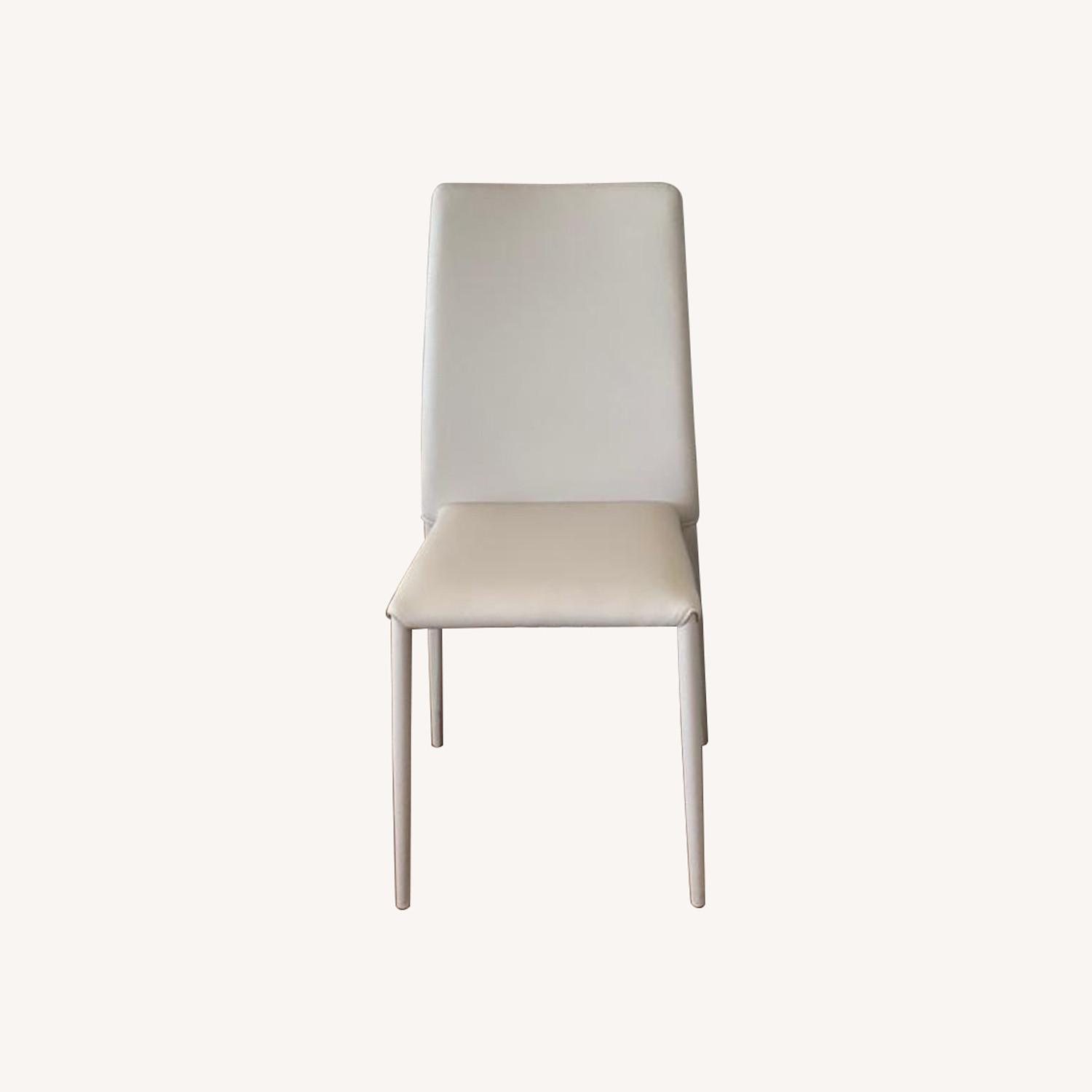 Seller's Notes:A simple design that will be at home in any space, the Malik Flex Side Chair will meet all of your needs with its comfortable, ergonomic seat back and neutral light grey appearance, making it ideal for any dining room or office space. -Light Grey Ecopelle (Faux Leather) -Fully Upholstered -Flexible Ergonomic Back -Metal Frame -Made in Italy Seat Height: 19" Note: I have listed the chairs as NEW as they were bought from Cantoni and never used. They are in perfect condition.