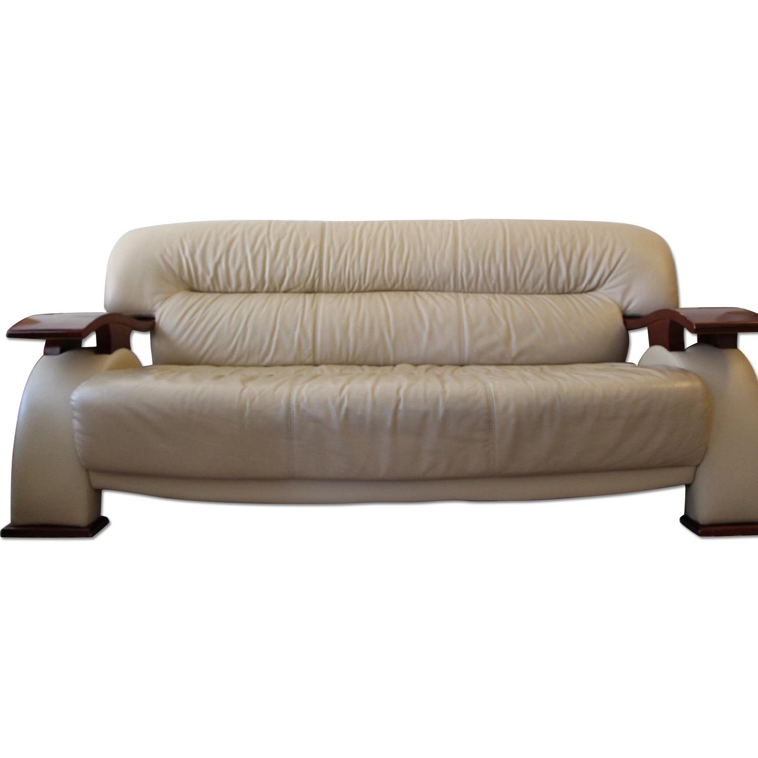 Seller's Notes:This adorable Living RSofa Set in Cappuccino Ultra Bonded Leather includesLoveseat and Sofa. It is defined by combining Cappuccino leather with wood. This Set with curved detail will bring visual interest to any designed living room. The arms of these pieces have rich wenge wood finish and are beautifully crafted in a wavy design. The price is for the sofa and loveseat. Matching chair is available separately. Features: Set of 2 Modern style Upscale Cappuccino leather Wenge wood arms Detail stitch in pillows Wood detail on arms and feet Saber back legs Curved accents FinishCappuccino Ultra Bonded leather