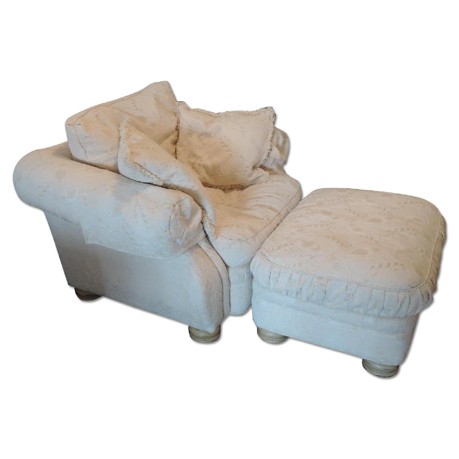 Seller's Notes:This chair is a cloud. Almost literally. It's fluffy, it's white, it's capacious, and impeccably cared for. It's perfect for watching a movie with a snuggle. The ottoman is an excellent piece in its own right. Together they're a dream. Have you ever flown in an airplane, and in the low-pressure air, eyelids-heavy, thought, "it would be wonderful, truly wonderful, if I could nap on that cumulonimbus cloud over there?" This is the best analog you're ever going to get. I recently moved and the chair, regrettably, drew the short straw when I downsized to a smaller apartment. Please take good care of it. Enjoy your cloud.
