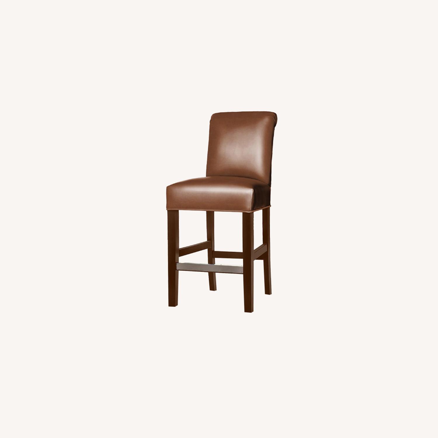 Seller's Notes:Carrington Court Direct pair of leather counter stools. Made in USA. Seat height is 24". Leather color is Prescott Tussah. Finish is Brown Cherry. Excellent condition. No stains, scratches or discoloration.