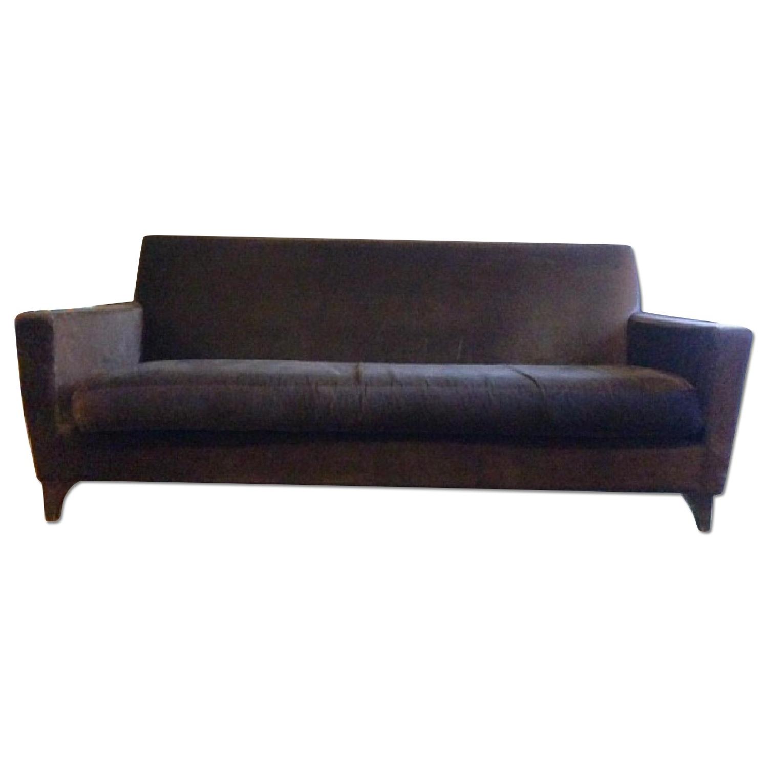 Seller's Notes:Selling this classic, sleek brown velvet couch that we have had for 6 years. It is a very comfortable couch in good shape. The cushions are soft and the couch is long enough to sleep on. Unfortunately it suffered some claw sharpening damage on the arms a few years back, but the overall effect of the couch is so sleek that the defects are minimized. We are redecorating and looking to change our couch out for a sectional. This couch is clearly well made and has a lot of life left in it!