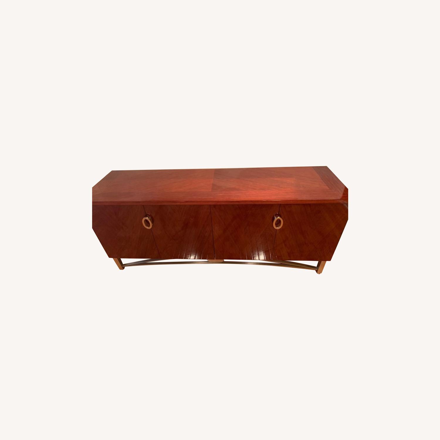 Seller's Notes:This Casa Novalia Bellagio buffet is made of beautiful solid African Rosewood. The Italian crafted buffet has four sliding doors and three internal drawers. Brushed stainless steel base with levelors. Adjustable shelves on both sides. Like new. No known marks or scratches. Matching dining room set sold in separate listing.