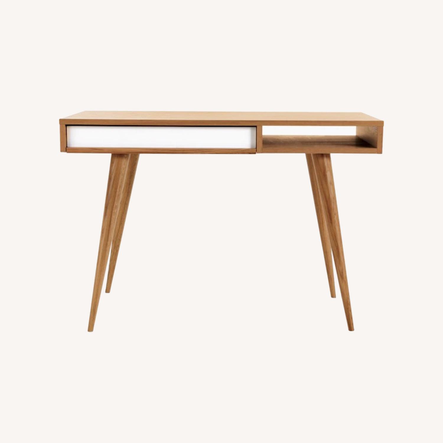 Seller's Notes:Celine Desk streamline desk, good for large and small spaces- tapered solid wood legs, one drawer, open cubby. Designer Nazanin Kamala for CASE. WALNUT. Purchased @ DWR. Almost new. Moving out of country.
