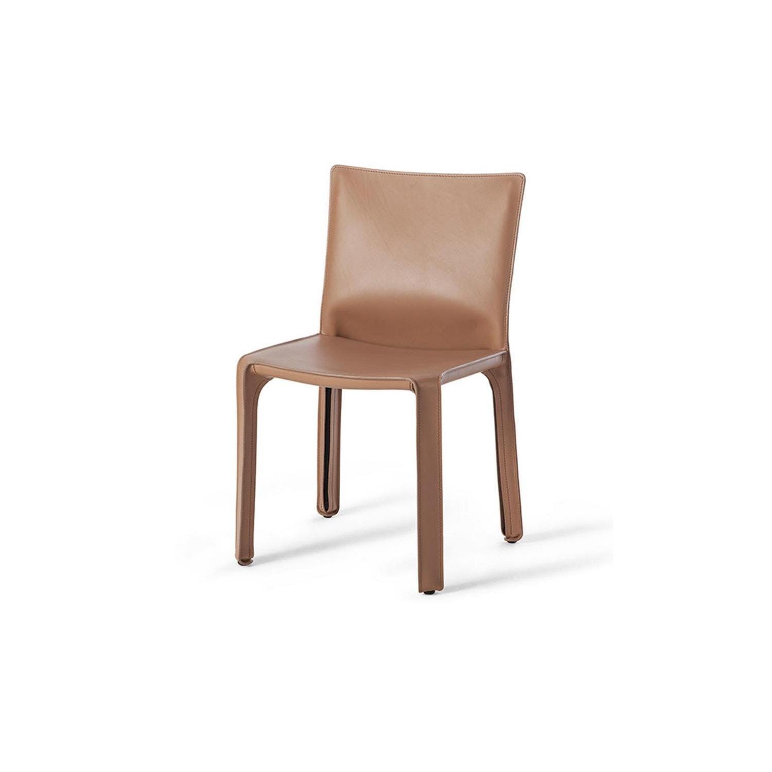 Seller's Notes:Mario Bellini for Cassina (2) 412 CAB side chairs in Natural color saddle leather Approx. height 32", width 20.5", depth 18.5" Chairs have some minor stains and scuff marks but condition is good overall. Normal wear and tear.