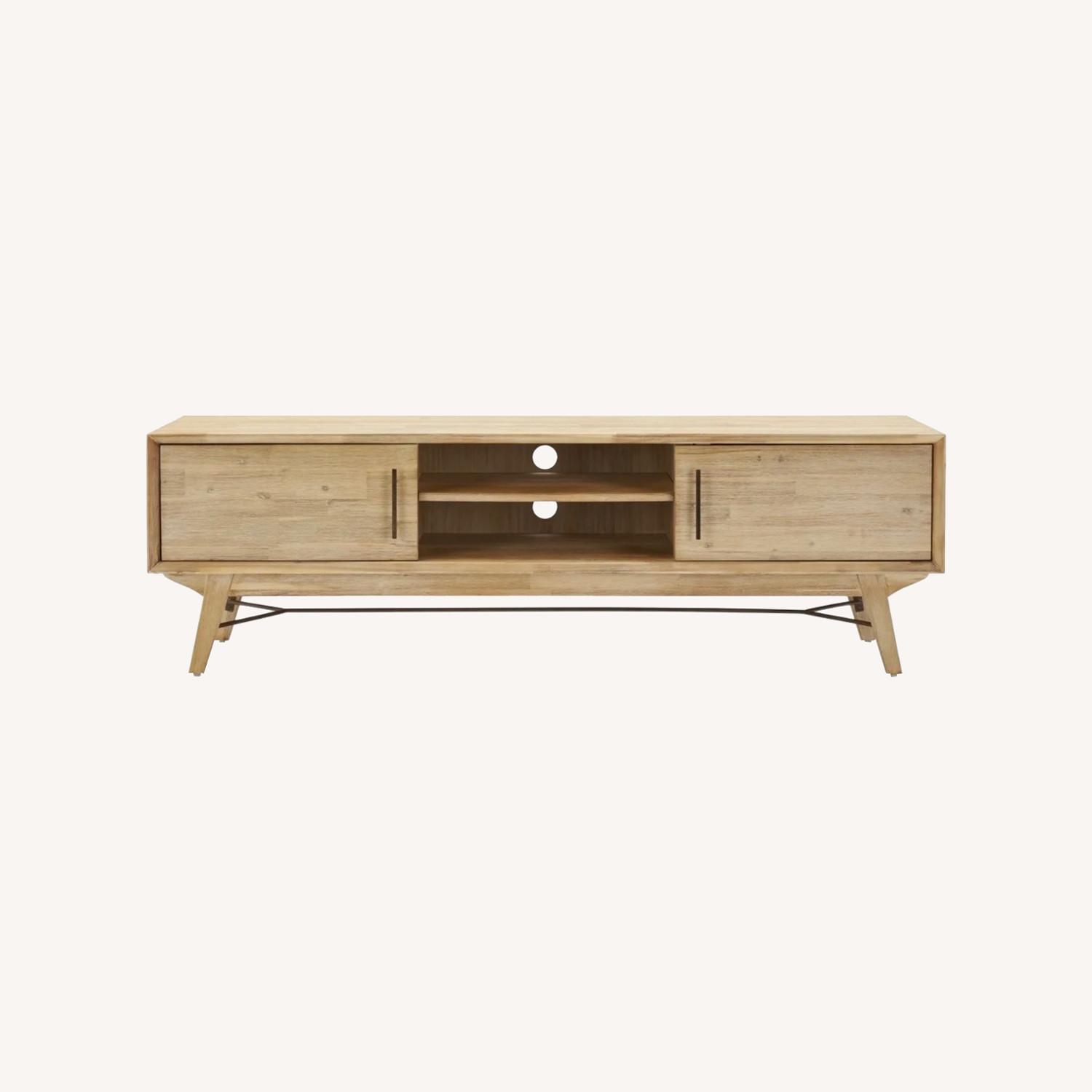 Seller's Notes:Awesome natural wood media console TV Stand. Doesn’t fit in our new apartment.
