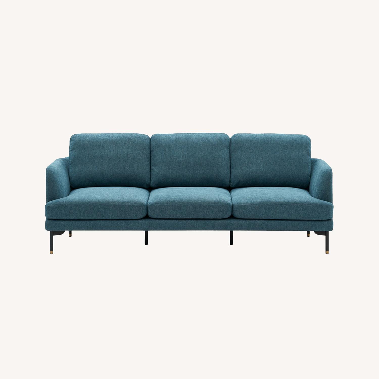 Seller's Notes:Pebble adds sophisticated simplicity and contemporary charm with its gently curved frame and metal brass-capped legs.
