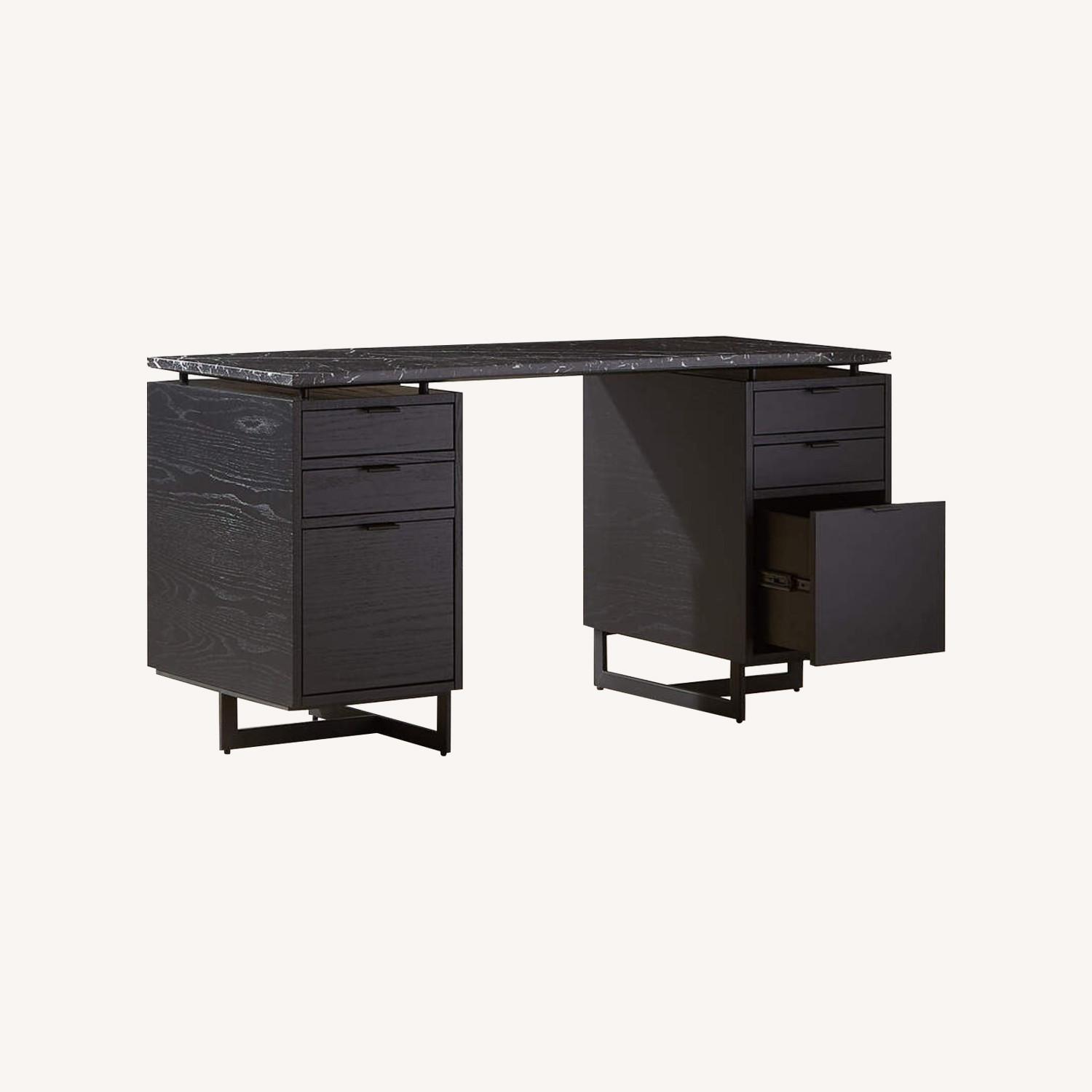 CB2 6-Drawer Black Oak Desk w Black Marble Top